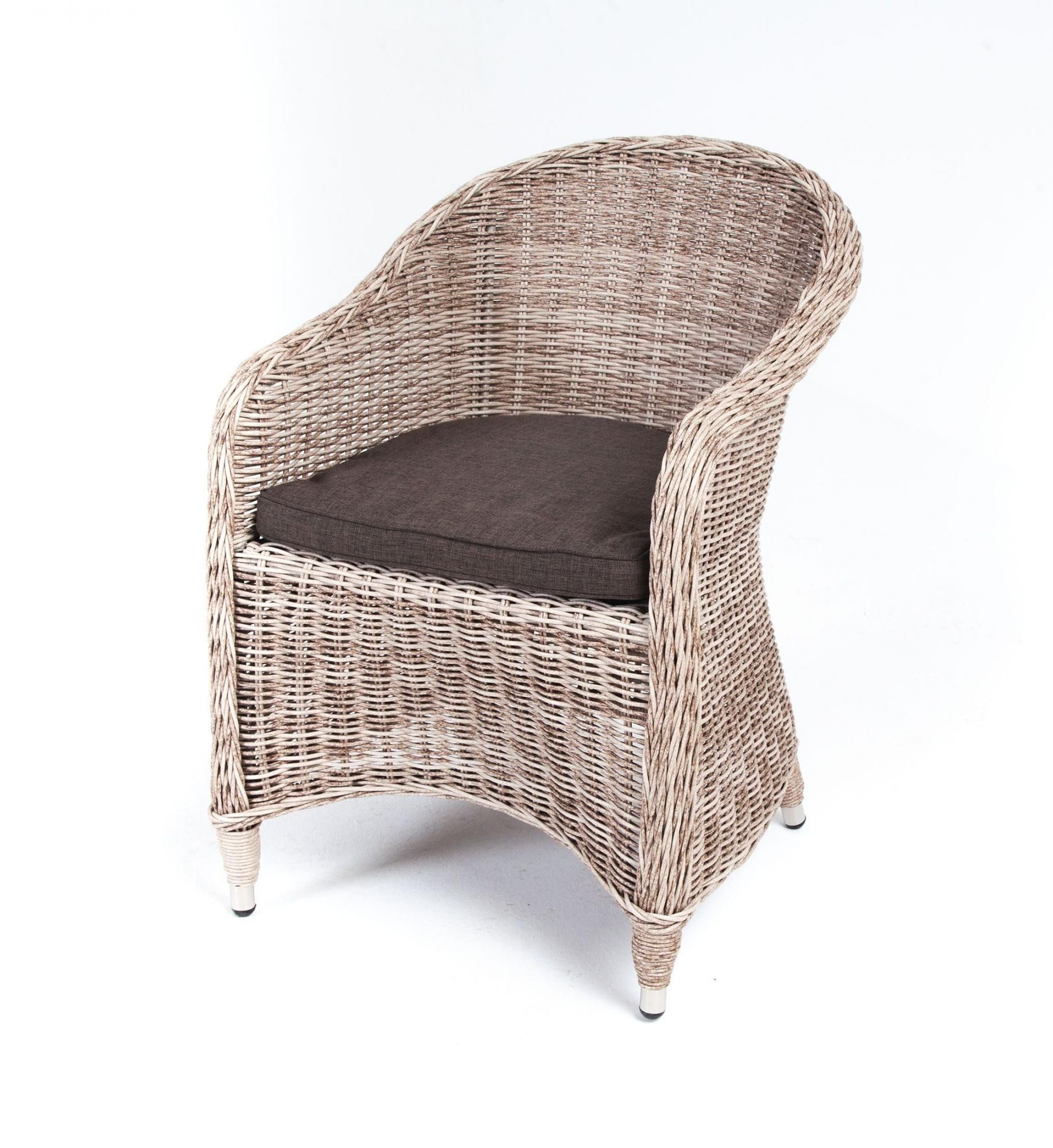 Равенна плетеное кресло из искусственного ротанга, цвет бежевый. Кресло из искусственного ротанга из коллекции «Равенна» сочетает в себе домашний уют, современный стиль и природные мотивы. Размеры: 680x570x810 мм. Кресло изготовлено вручную. Каркас алюминиевый, а сверху он оплетен круглым искусственным ротангом. Само кресло имеет бежевый оттенок. В комплект включена мягкая подушка-сиденье темно-серого цвета. Благодаря такой расцветке кресло идеально вписывается в любой интерьер, а также сочетается с другой мебелью, выполненной в натуральных оттенках. Дизайнерское кресло подойдет и для помещений, и для эксплуатации под открытым небом. Габариты 680x570x810мм Цвет плетения бежевый Цвет подушки серый Материал каркаса алюминий Материал плетения искусственный ротанг Материал подушки полиэстер 100% плотностью 230гр/м2 с влагоотталкивающей пропиткой Габариты упаковки 590х700х830 мм Вес(Брутто) 8 Вес 8кг