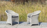 Равенна кресло белое. Равенна плетеное кресло белое. Стул в комплекте с подушками, алюминиевый каркас, круглый искусственный ротанг, ручное плетение, цвет белый, цвет подушки серый. Габариты 680x570x810мм Цвет плетения Белый Цвет подушки серый Материал каркаса алюминий Материал плетения искусственный ротанг Материал подушки полиэстер 100% плотностью 230гр/м2 с влагоотталкивающей пропиткой Габариты упаковки 590х700х830 мм Вес(Брутто) 8 Вес 8кг