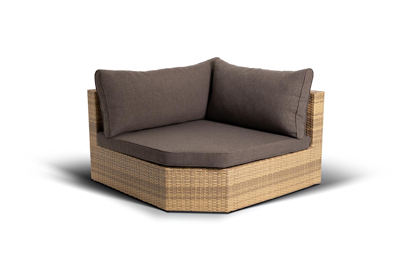 Сан-марино угловой модуль дивана, соломенный. Сан-Марино угловой модуль дивана, алюминиевый каркас, искусственный ротанг, плоское плетение, цвет соломенный, размер 1120х1120х620. В комплекте с подушками серого цвета со съемными чехлами. Габариты 1120x1120x620мм Цвет плетения соломенный Цвет подушки серый Материал каркаса алюминий Материал плетения искуственный ротанг Материал подушки полиэстер 100% плотностью 230гр/м2 с влагоотталкивающей пропиткой Габариты упаковки 1120х1120х620 Вес 12кг