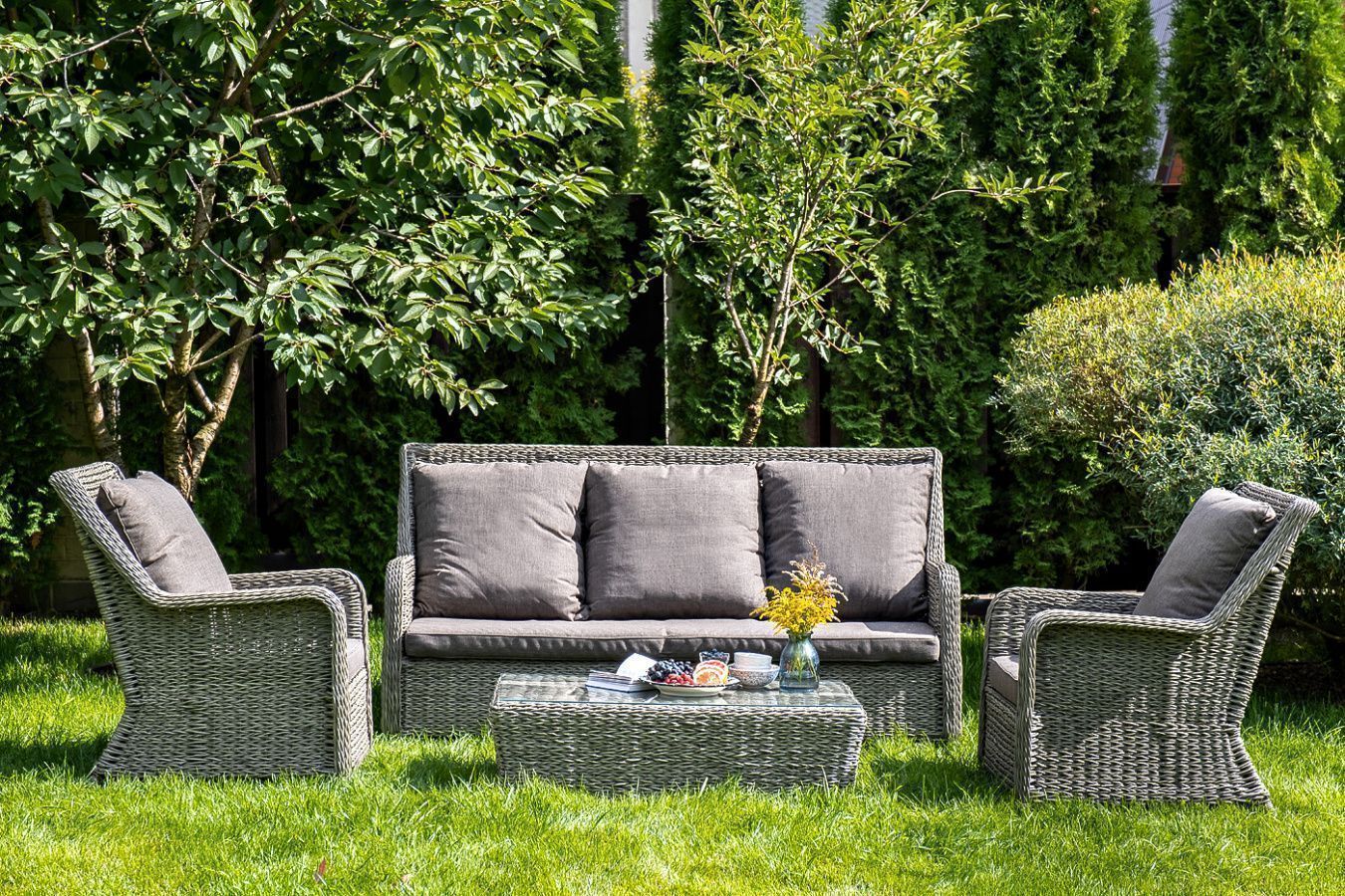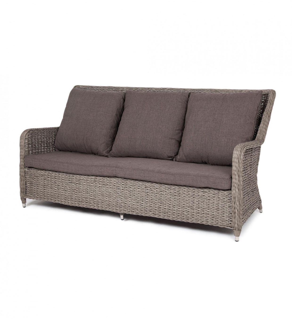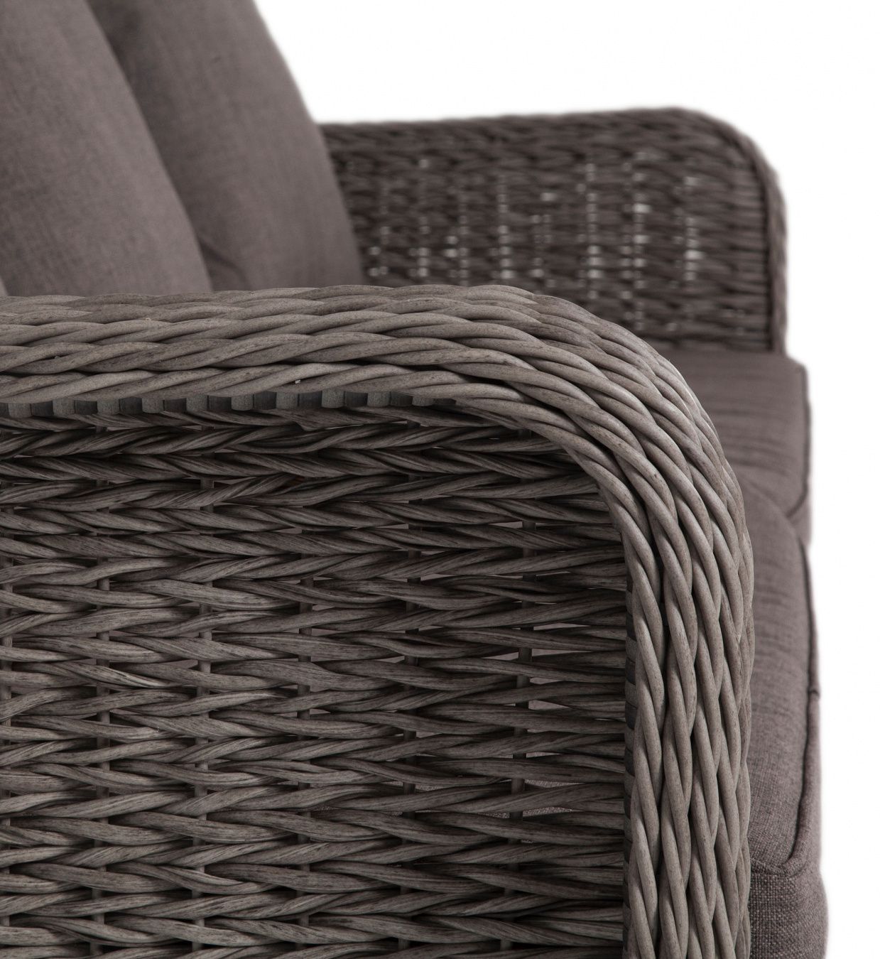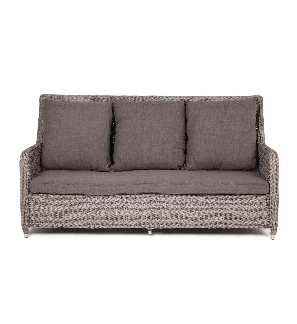 Гляссе диван трехместный из искусственного ротанга (гиацинт), цвет серый. Диван «Гляссе» подходит для размещения сразу трех персон. Его основа из прочного алюминиевого каркаса. Размер модели – 1900x880x990мм. Плетение из искусственного ротанга вида гиацинт является основным декоративным элементом мебели, цвет - серый. В комплекте с трехместным диваном идут мягкие подушки для комфортного расположения. Чехлы съемные серого цвета из высококлассного полиэстера с плотностью 230гр/м2. Защитные свойства ткани усиливаются при помощи влагоотталкивающей пропитки. Габариты товара (ДШВ) 1900x880x990мм Вид ротанга гиацинт Цвет плетения серый (гиацинт) Цвет подушки серый Материал каркаса (стул/кресло/диван) алюминий Материал плетения искусственный ротанг Материал подушки полиэстер 100% плотностью 230гр/м2 с влагоотталкивающей пропиткой Габариты упаковки (ДШВ) 190/90/99 Вес (Брутто) 35 Вес (Нетто) 34.5кг