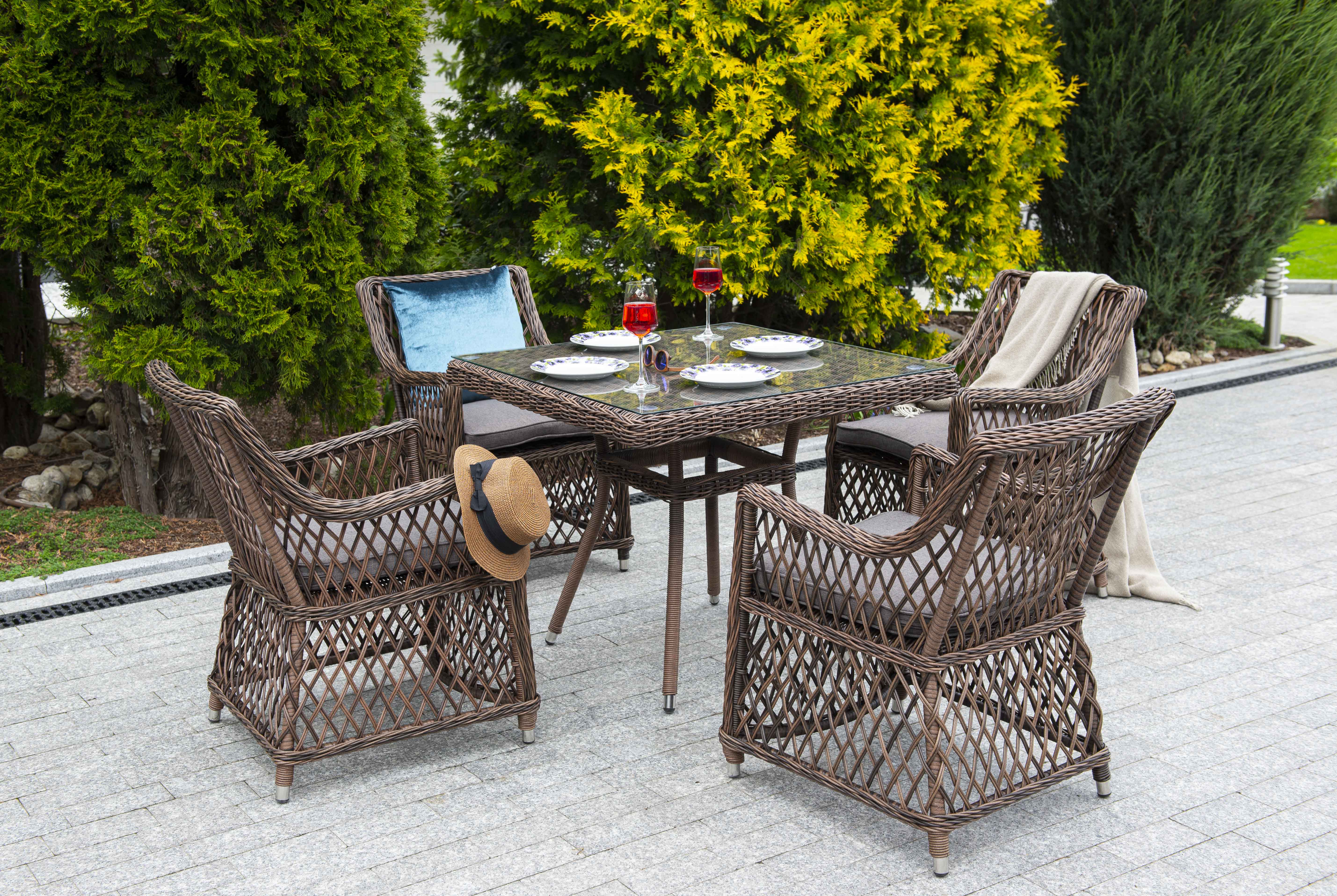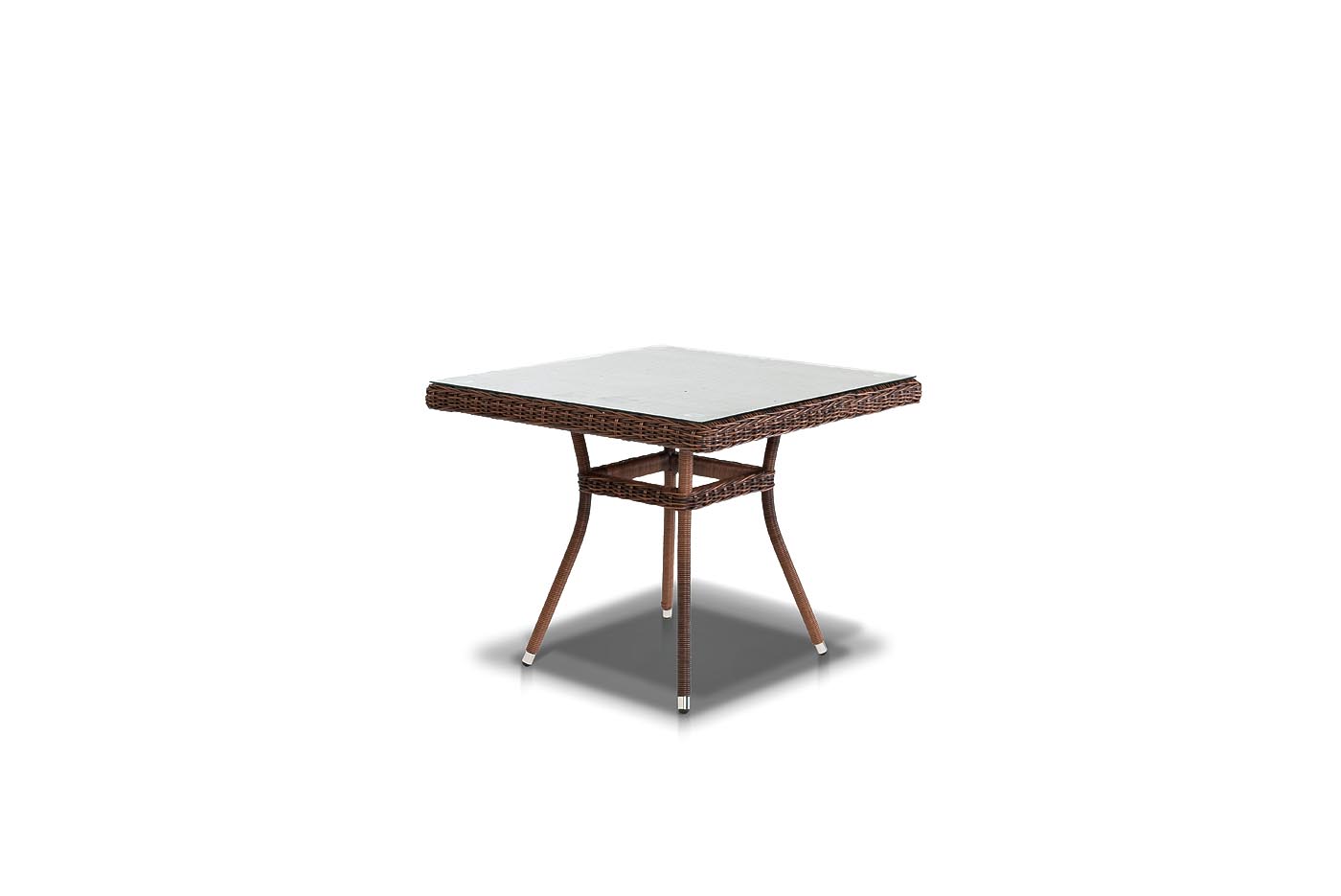 Айриш, стол, коричневый 900х900. Айриш, стол со стеклянной столешницей толщиной 5мм, алюминиевый каркас, искусственный ротанг, ручное круглое плетение, размеры 900х900х750, цвет коричневый Габариты 900x900x750мм Цвет плетения коричневый Материал каркаса алюминий Материал плетения искусственный ротанг Габариты упаковки 90х90х75 см Вес(Брутто) 16 Вес 16кг