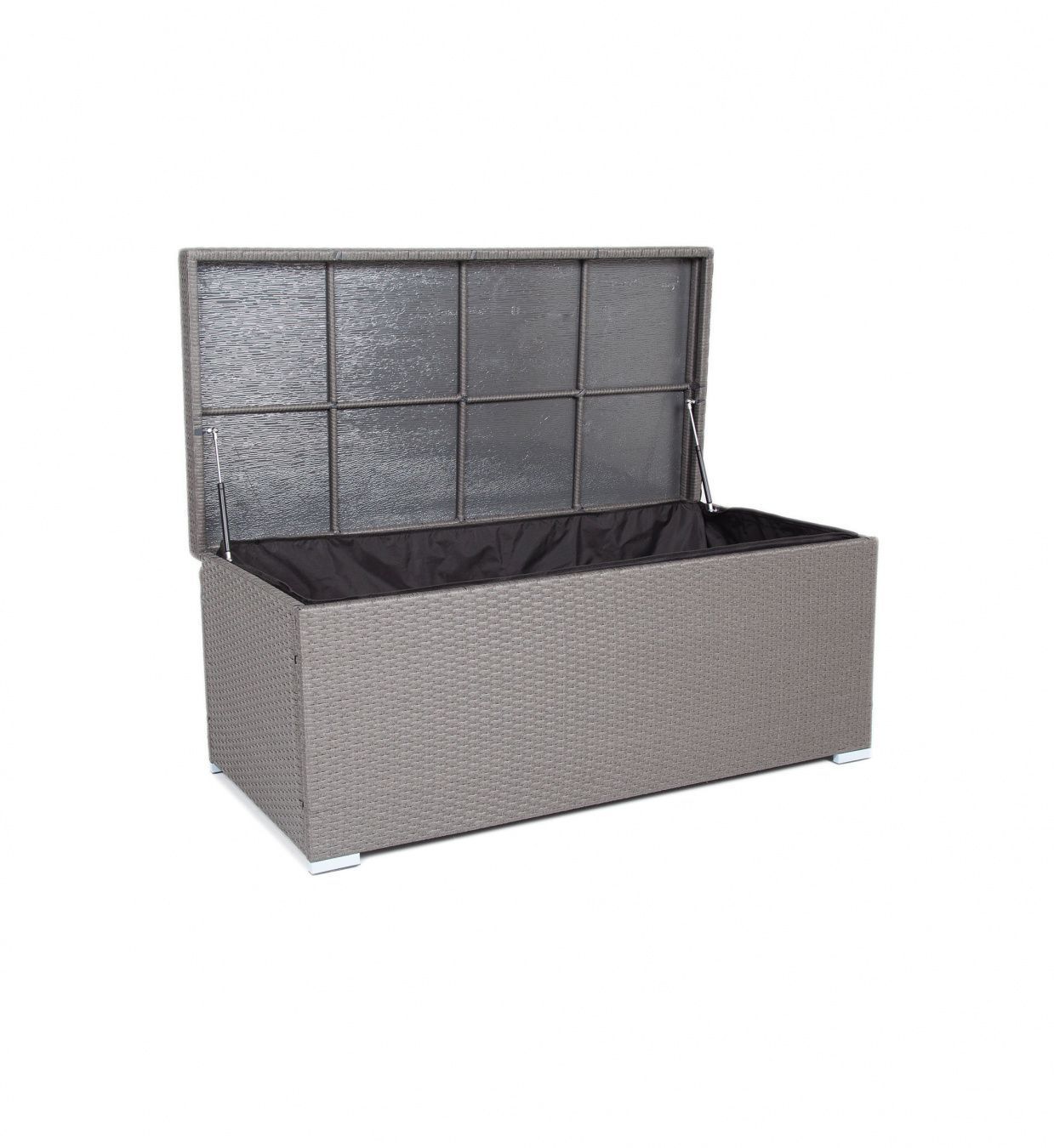 Порту сундук водонепроницаемый из искусственного ротанга, цвет графит. Порту вместительный сундук из плоского искусственного ротанга в цвете графит. В основе - алюминиевый каркас. Размер: 1400х700х600 мм. Сундук предназначен для хранения текстильных изделий, водонепроницаем, поэтому можно использовтаь на улице, не боясь осадков. Габариты 1400x700x590мм Вид ротанга плоский Цвет плетения графит Материал каркаса алюминий Материал плетения искусственный ротанг Габариты упаковки 143/21/73 Вес(Брутто) 26 Вес 24кг