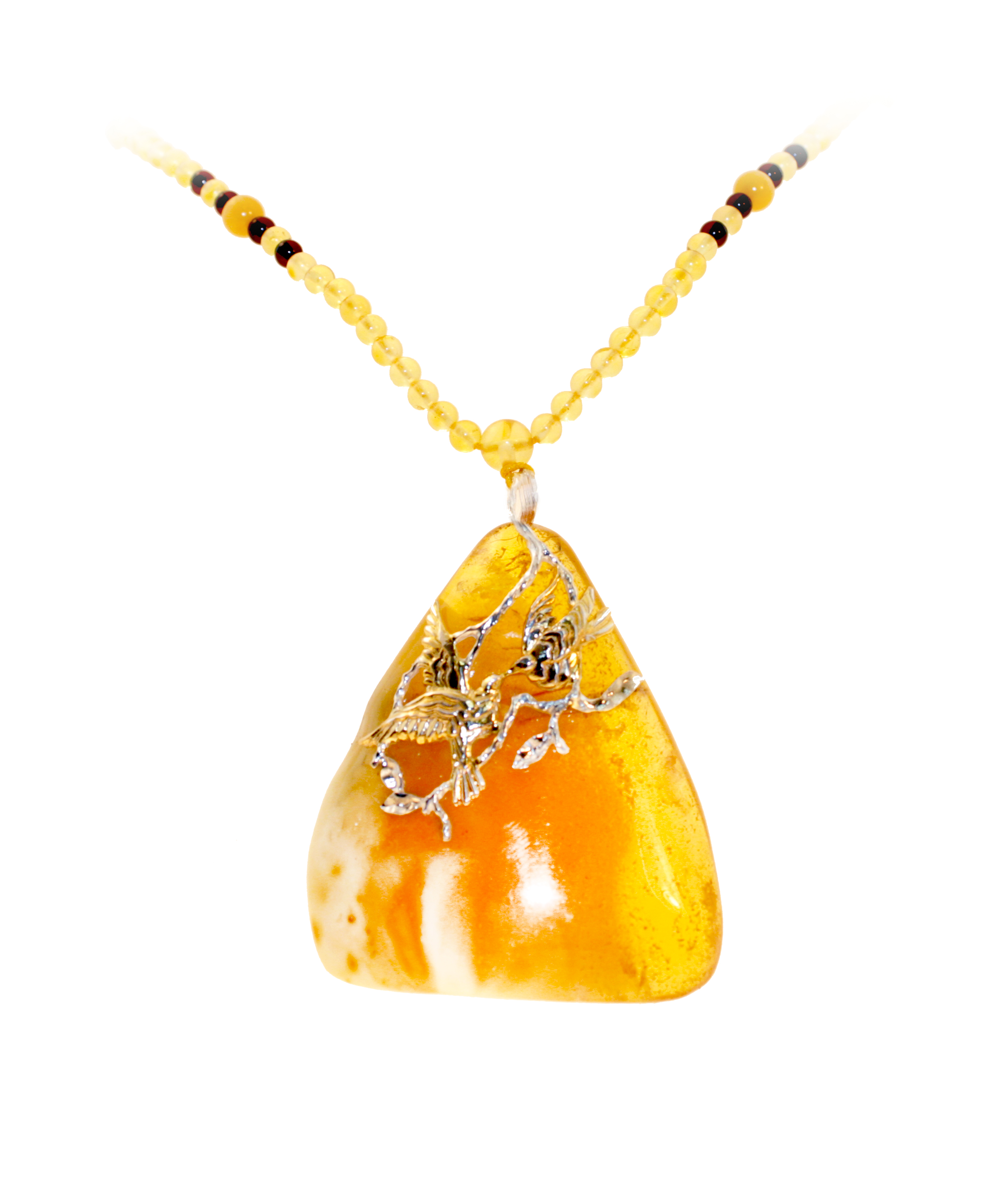 Эксклюзивный кулон из янтаря yk 6. Изготовлено из целого натурального янтаря и серебра 875 пробы с позолотой. Стоимость зависит от веса, уточняйте, пожалуйста, у оператора. Вес изделия на фотографии 34,45 гр.