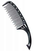 Гребень с изогнутой ручкой для окрашивания волос и нанесения средств по уходу за волосами. Ручка гребня оснащёна специальной площадкой - подставкой, позволяющей зафиксировать гребень на плоской поверхности вертикально, зубцами вниз, во избежание стекания красителя с зубцов. Особый состав высокотехнологичного пластика, применяемого в авиакосмической промышленности, делает расчёски Y.S. PARK очень прочными, гибкими, упругими, невосприимчивыми к химическим веществам, применяемым в парикмахерских, и термостойкими - до 220 градусов по Цельсию. Страна происхождения: Япония Артикул: YS-605 black Бренд: Y.S.PARK Тип расчески: С ручкой Длина расчески: 21 - 22 см Материал расчески: Пластик