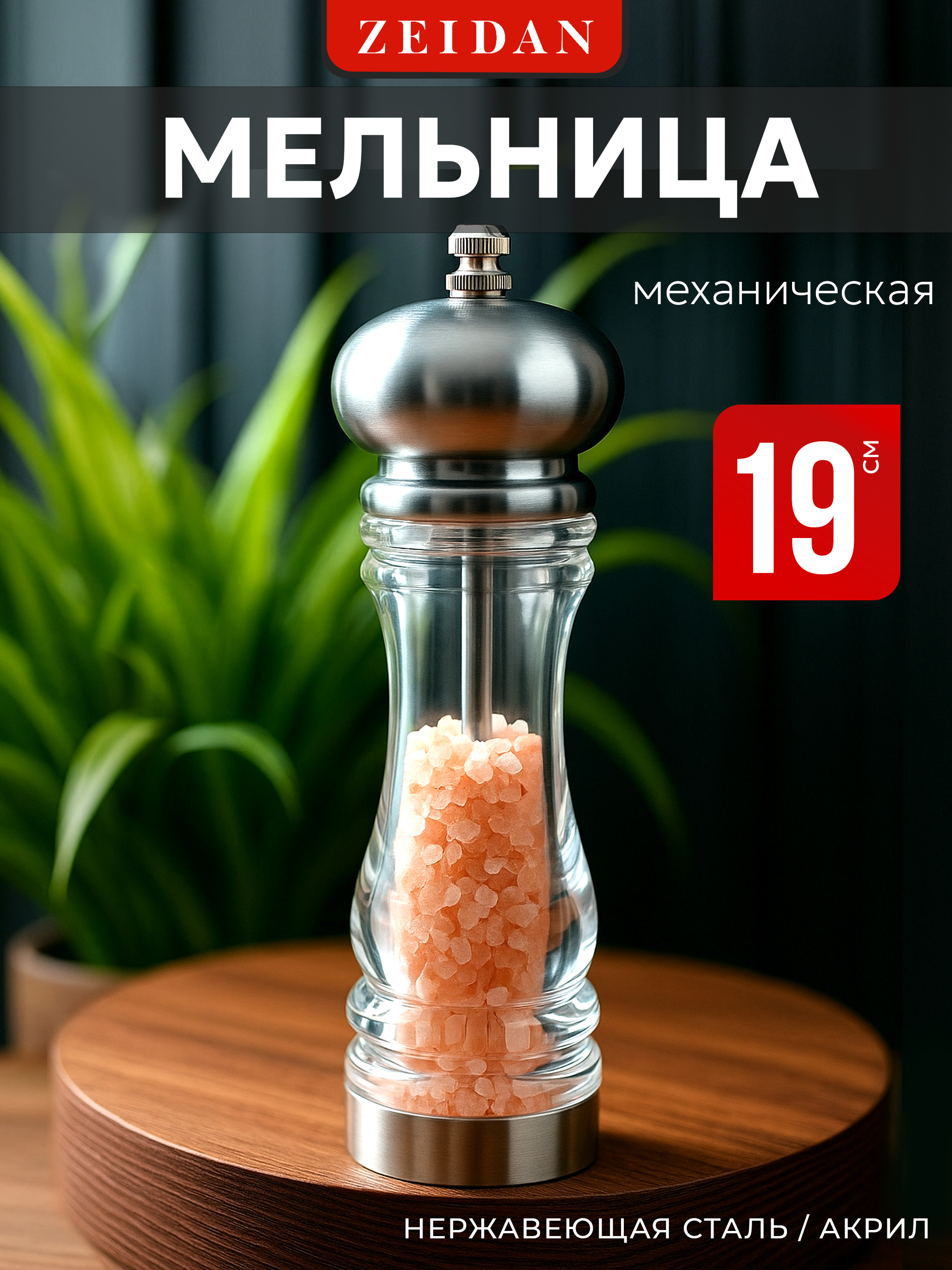 Мельница для перца и соли zeidan z-1023. Мельница для перца и соли Zeidan изготовлена из высококачественной нержавеющей стали и акрила. Надёжный и прочный механизм для измельчения изготовлен из высококачественной керамики. Размер: 19*6 см Благодаря мельнице для соли и перца аромат свежемолотой морской соли и черного перца придаст вашим блюдам совершенно другой вкус. Упаковка – подарочная коробка.