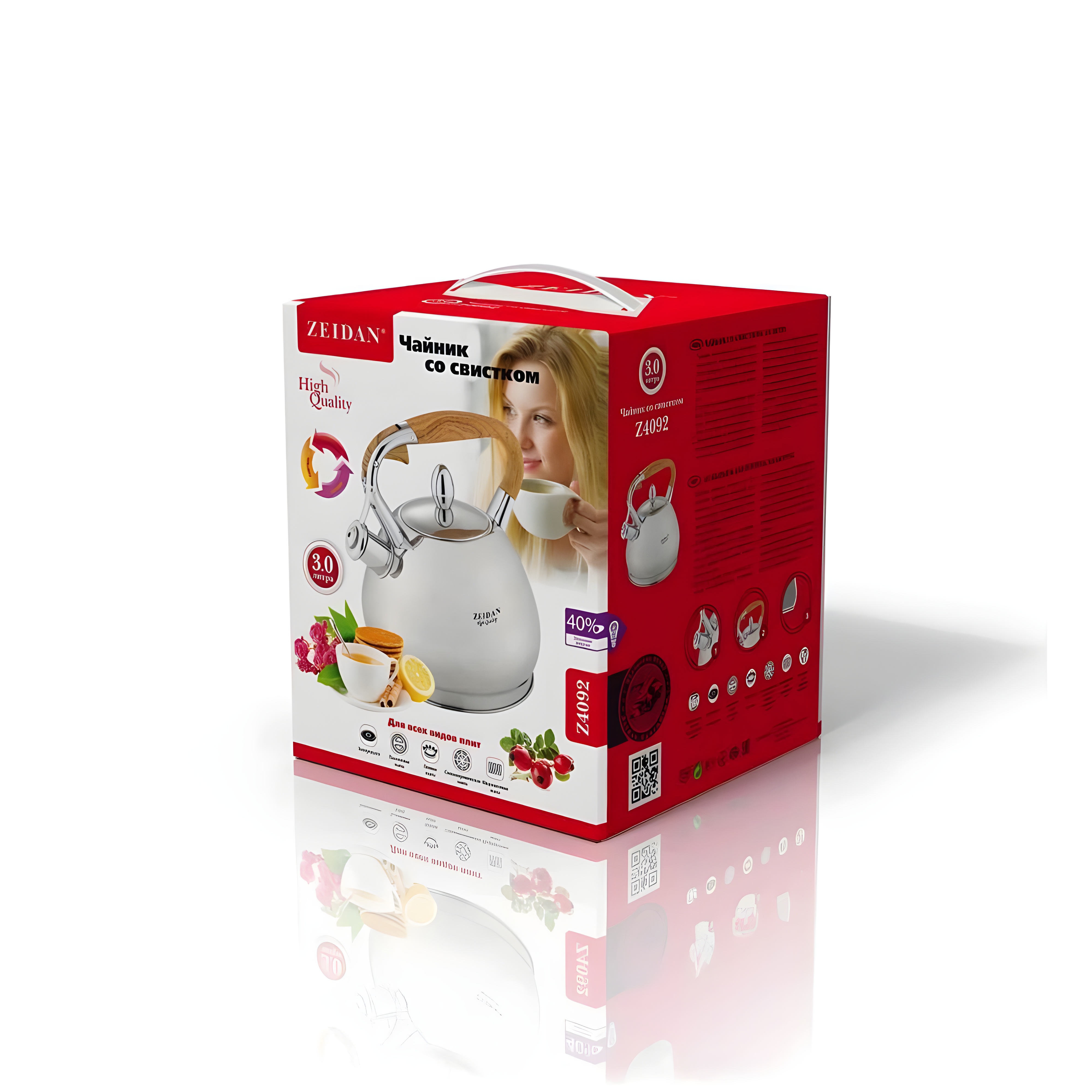 Чайник со свистком, 3,0 л, нержавеющая сталь, капсулированное индукционное дно