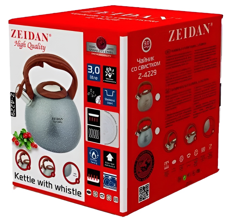 Чайник со свистком Zeidan 3 л, нержавеющая сталь, литой корпус, индукционное дно