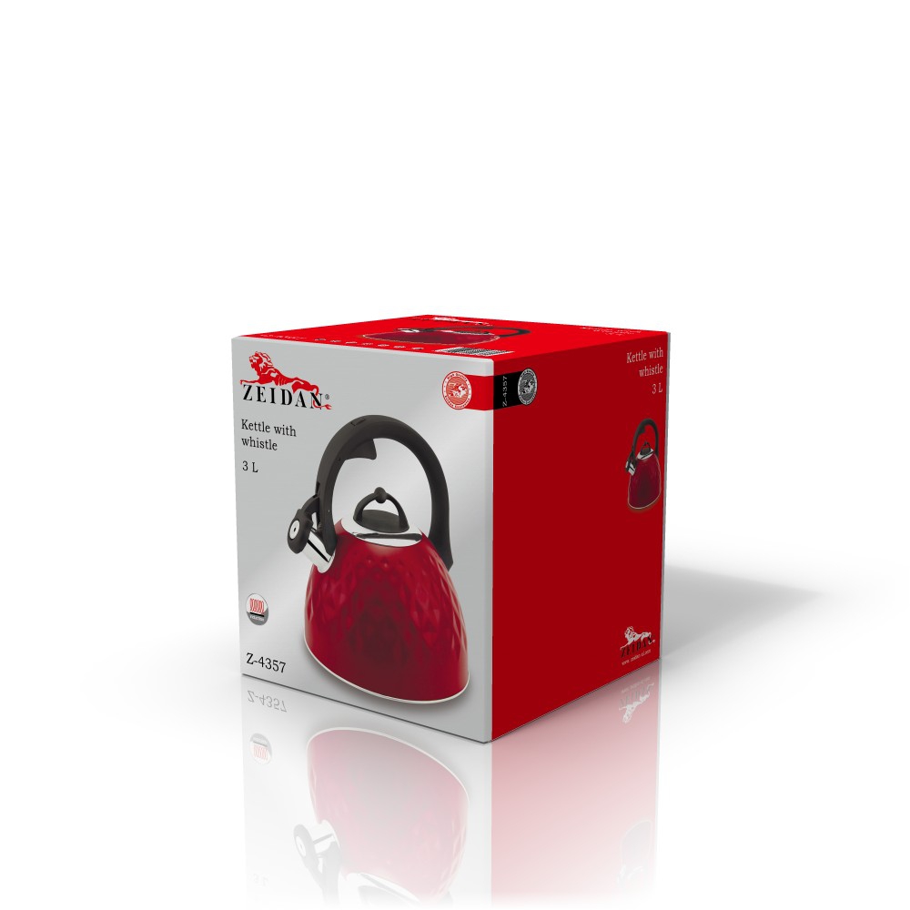 Чайник со свистком для газовой плиты 3 л Zeidan с толстым дном, индукционный, бордовый 3 литра, нержавеющая сталь