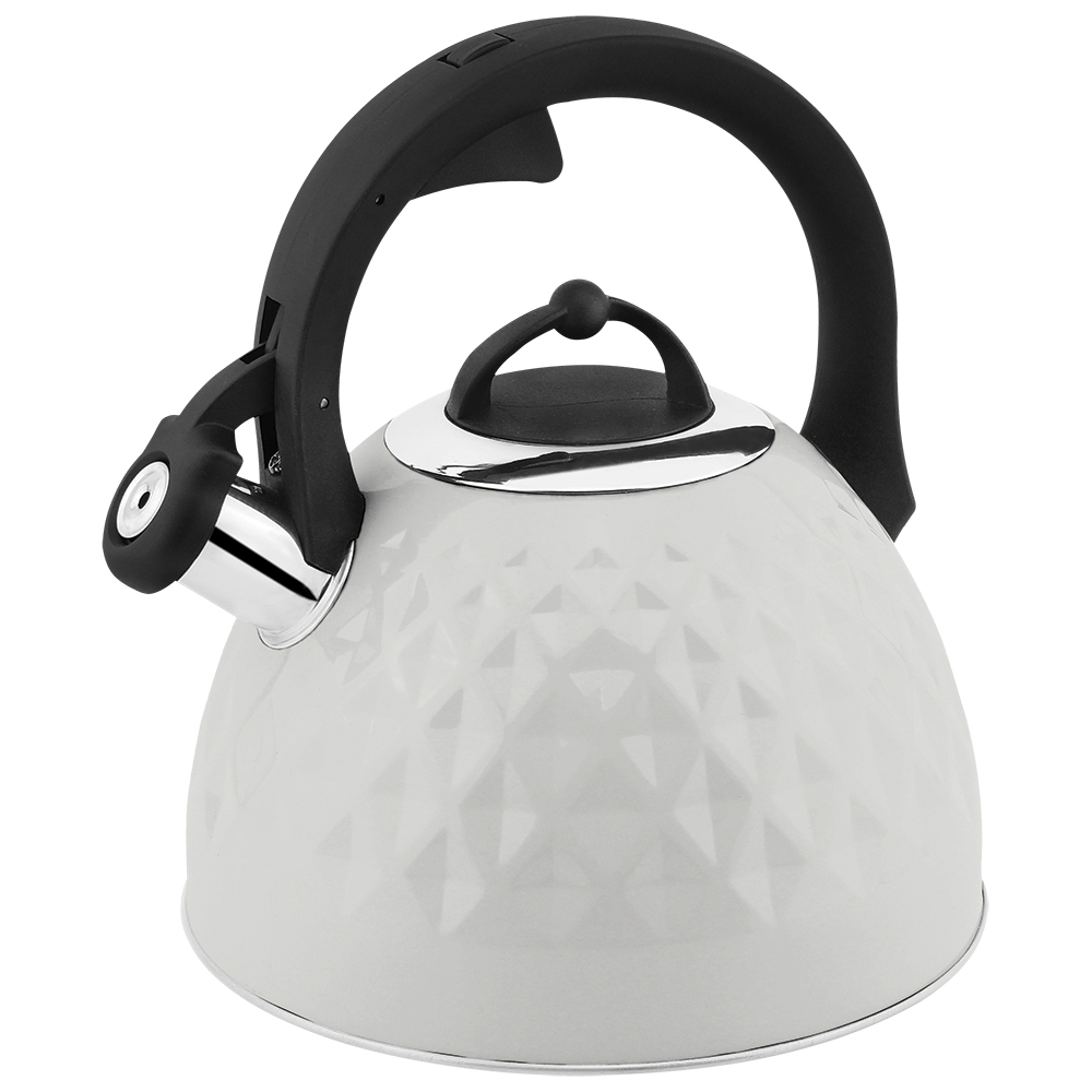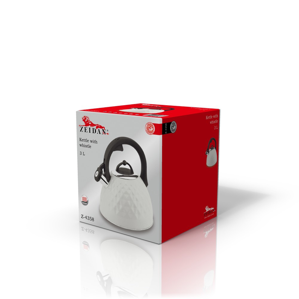 Чайник со свистком для газовой плиты 3 л Zeidan с толстым дном, индукционный, белый 3 литра, нержавеющая сталь