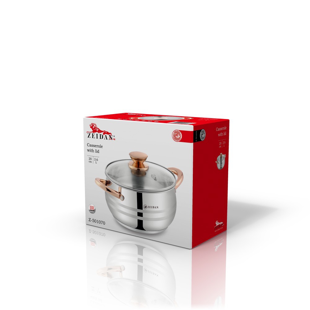 Кастрюля со стеклянной крышкой - 3,6 л (20 см), нержавеющая сталь, 3-x слойное капсулированное индукционное дно