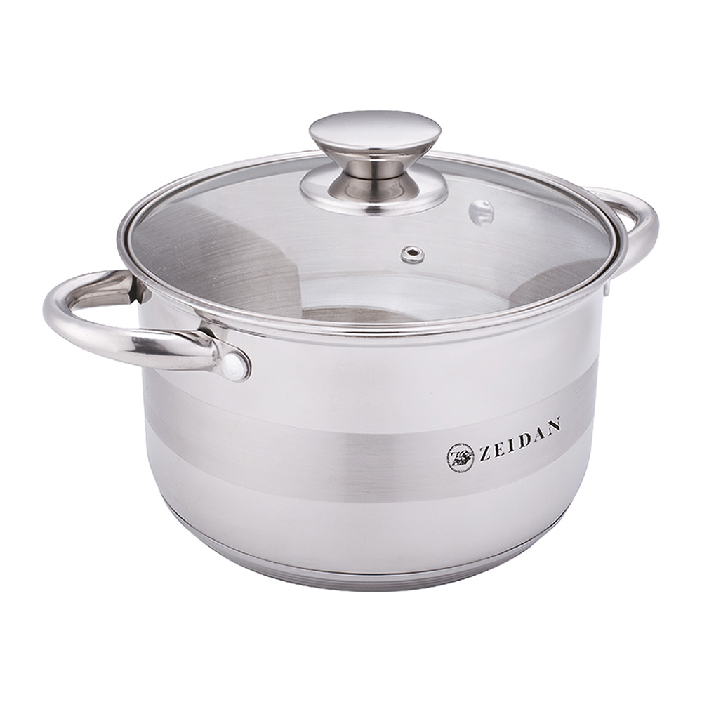 Кастрюля со стеклянной крышкой Zeidan 2,1л (d16 см), нержавеющая сталь, 5-ти степовое капсулированное индукционное дно, крышка