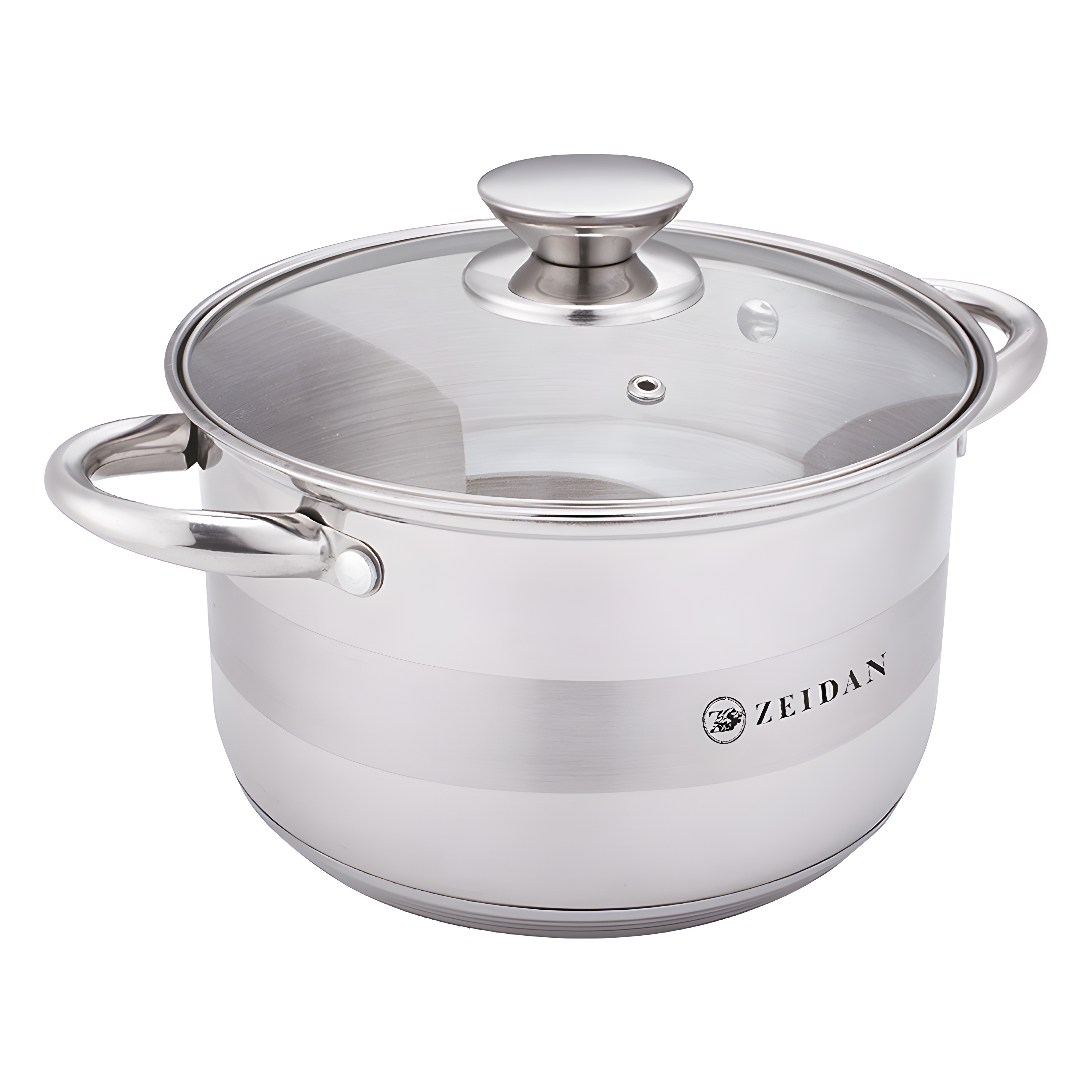 Кастрюля со стеклянной крышкой Zeidan 6,6 л (d24 см), нержавеющая сталь, 5-ти степовое капсулированное индукционное дно, крышка