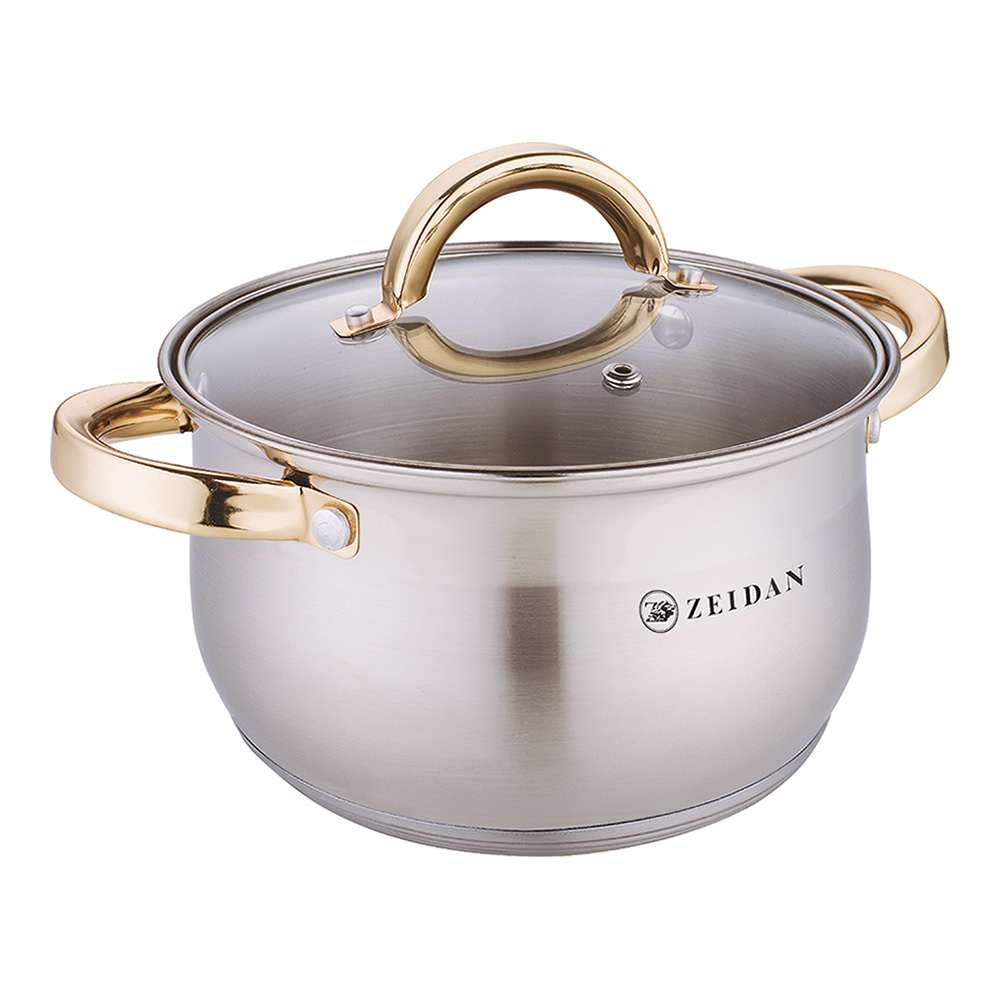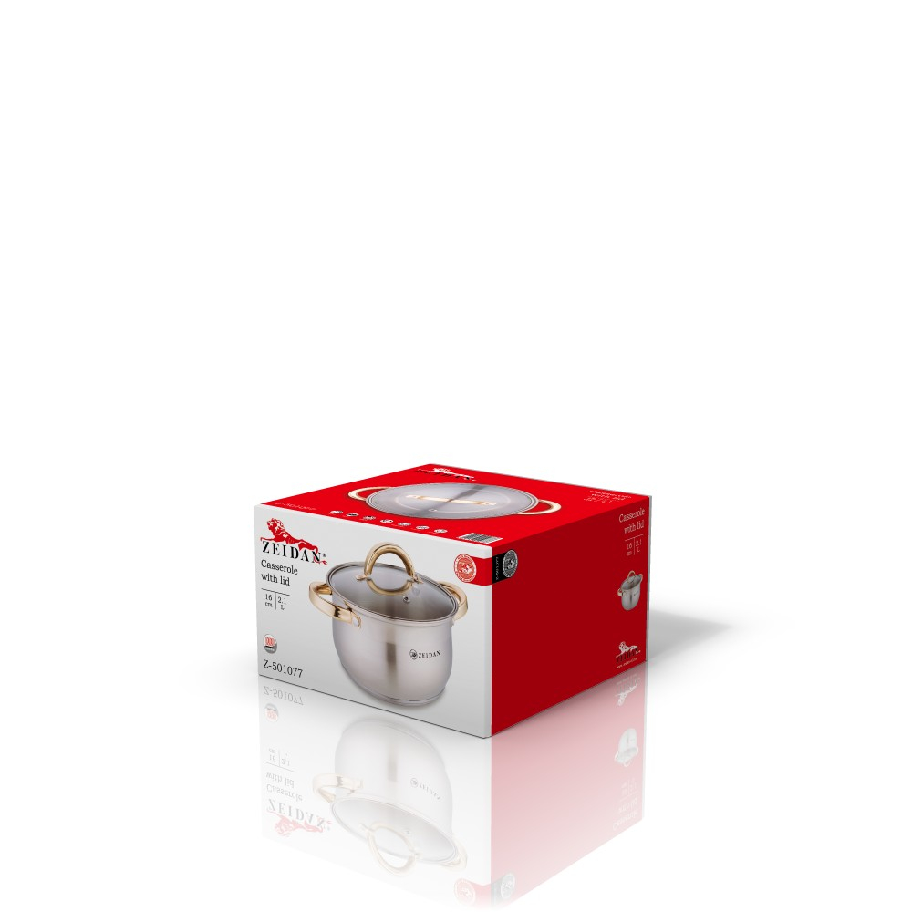 Кастрюля со стеклянной крышкой Zeidan 2,1 л (d16 см), нержавеющая сталь, 5-ти степовое капсулированное индукционное дно, крышка