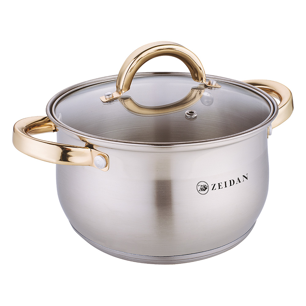 Кастрюля со стеклянной крышкой Zeidan 4л (d20 см), нержавеющая сталь, 5-ти степовое капсулированное индукционное дно, крышка -