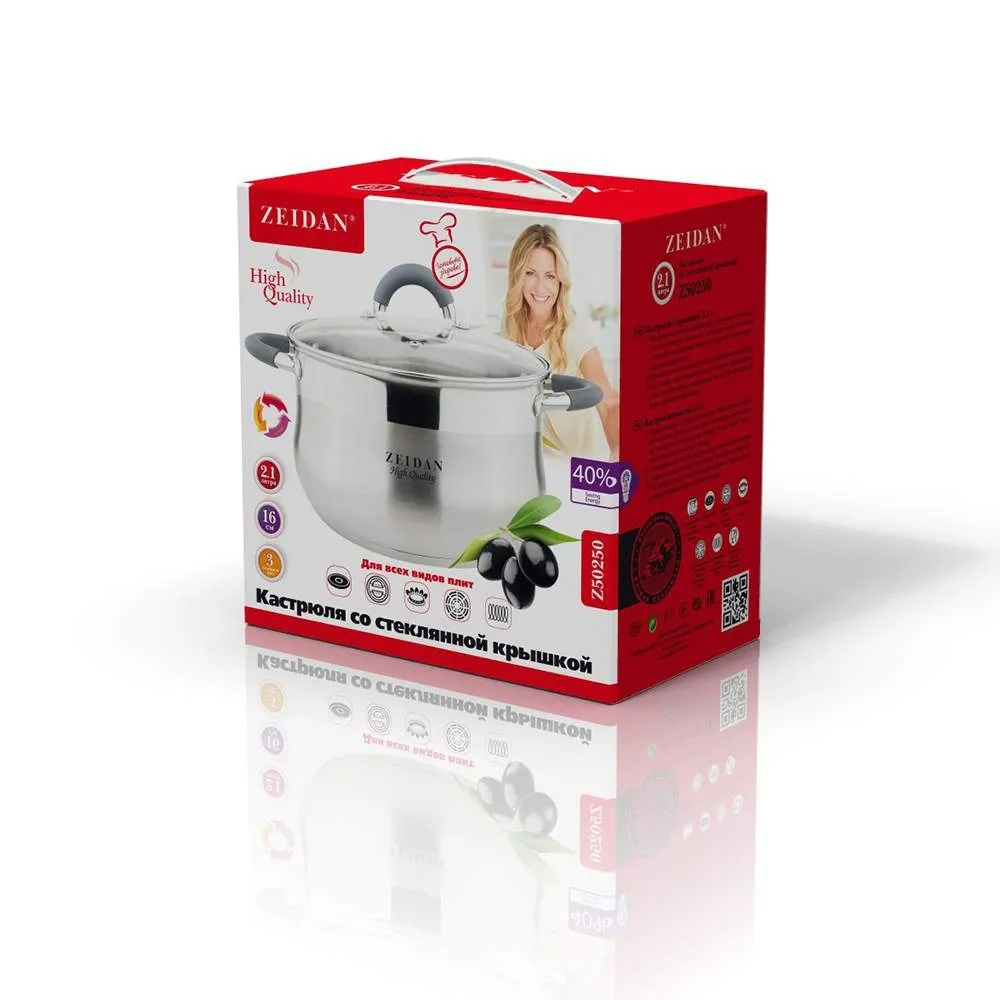 Кастрюля с крышкой нержавеющая сталь 2.1л, 16 см, Zeidan