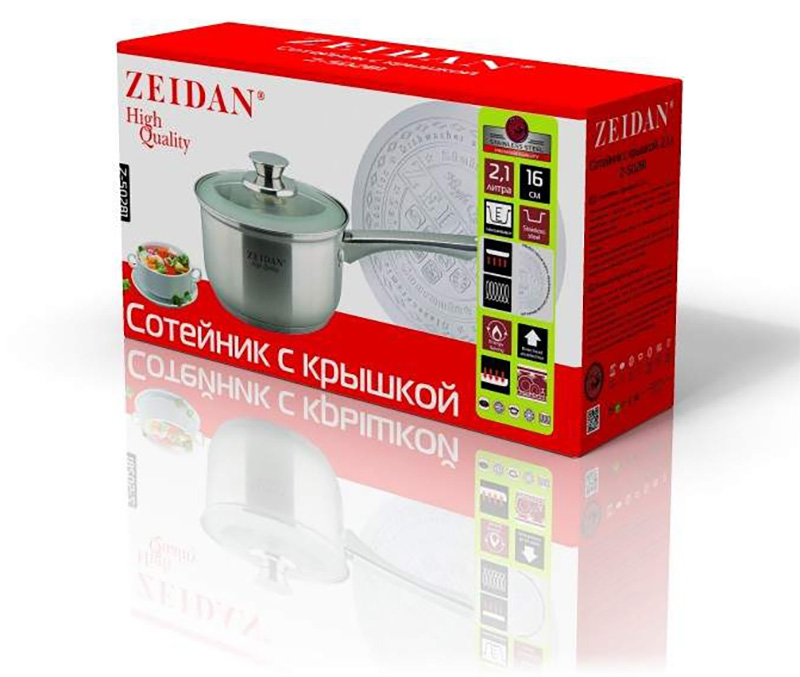 Сотейник с крышкой нержавеющая сталь lewen zeidan 2.1 л (d 16 см). Сотейник с крышкой изготовлен из высококачественной нержавеющей стали, которая отличается высокой экологической чистотой и долговечностью, устойчива к воздействию пищевых кислот, не образует соединений с компонентами пищи. Пятислойное термоаккумулирующее дно позволяет готовить с минимальным количеством воды и жира, или же совсем без них. Шкала литража на внутренней поверхности позволяет четко соблюдать пропорции любимых блюд. Сотейник с крышкой пригоден для мытья в посудомоечной машине. Сотейник с крышкой – 2.1 л (d16 см) Нержавеющая сталь 5-слойное капсулированное дно Матовая полировка снаружи, зеркальная полировка внутри, шкала литража, крышка - стекло с матовой тонировкой Декоративная полоса на корпусе