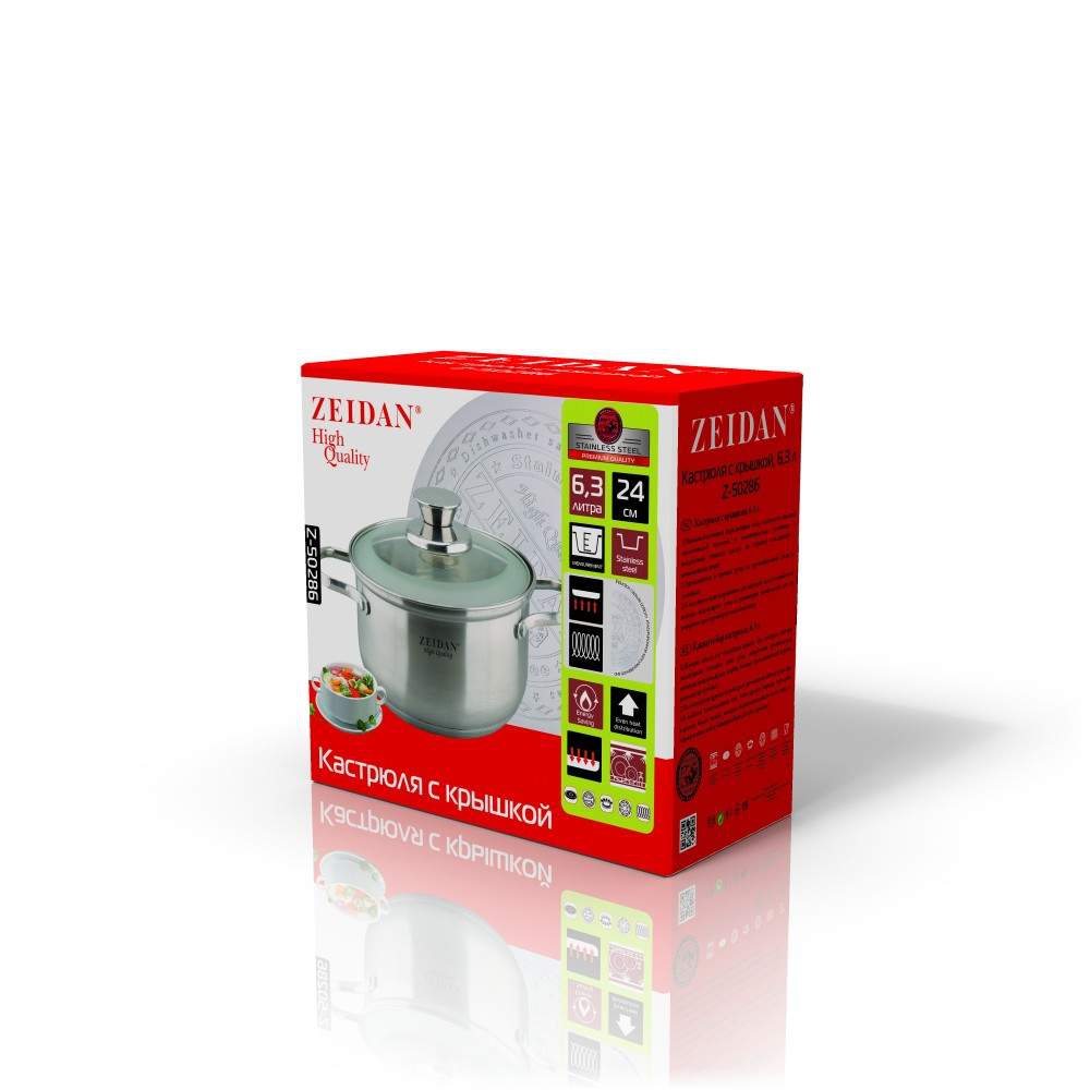 Кастрюля со стеклянной крышкой - 6.6 л (d24 см), нерж.сталь, 5-ти степовое капсулированное дно