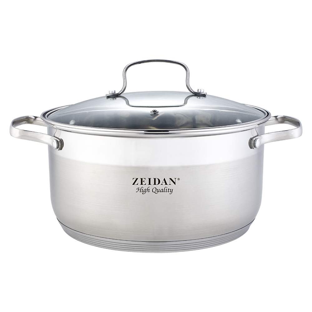 Кастрюля со стеклянной крышкой Zeidan 9,2 л (d30 см), нержавеющая сталь,5-ти степовое капсулированное индукционное дно