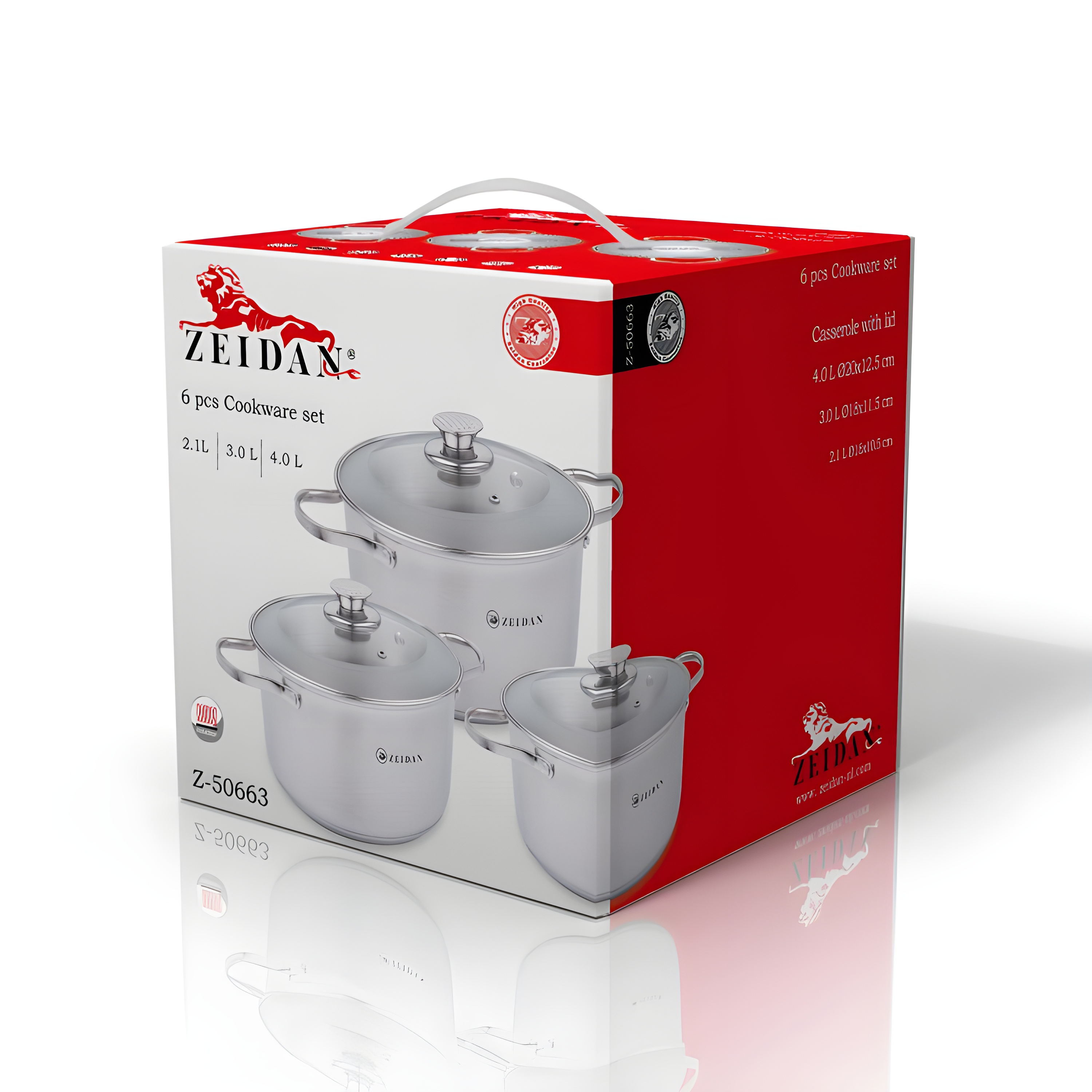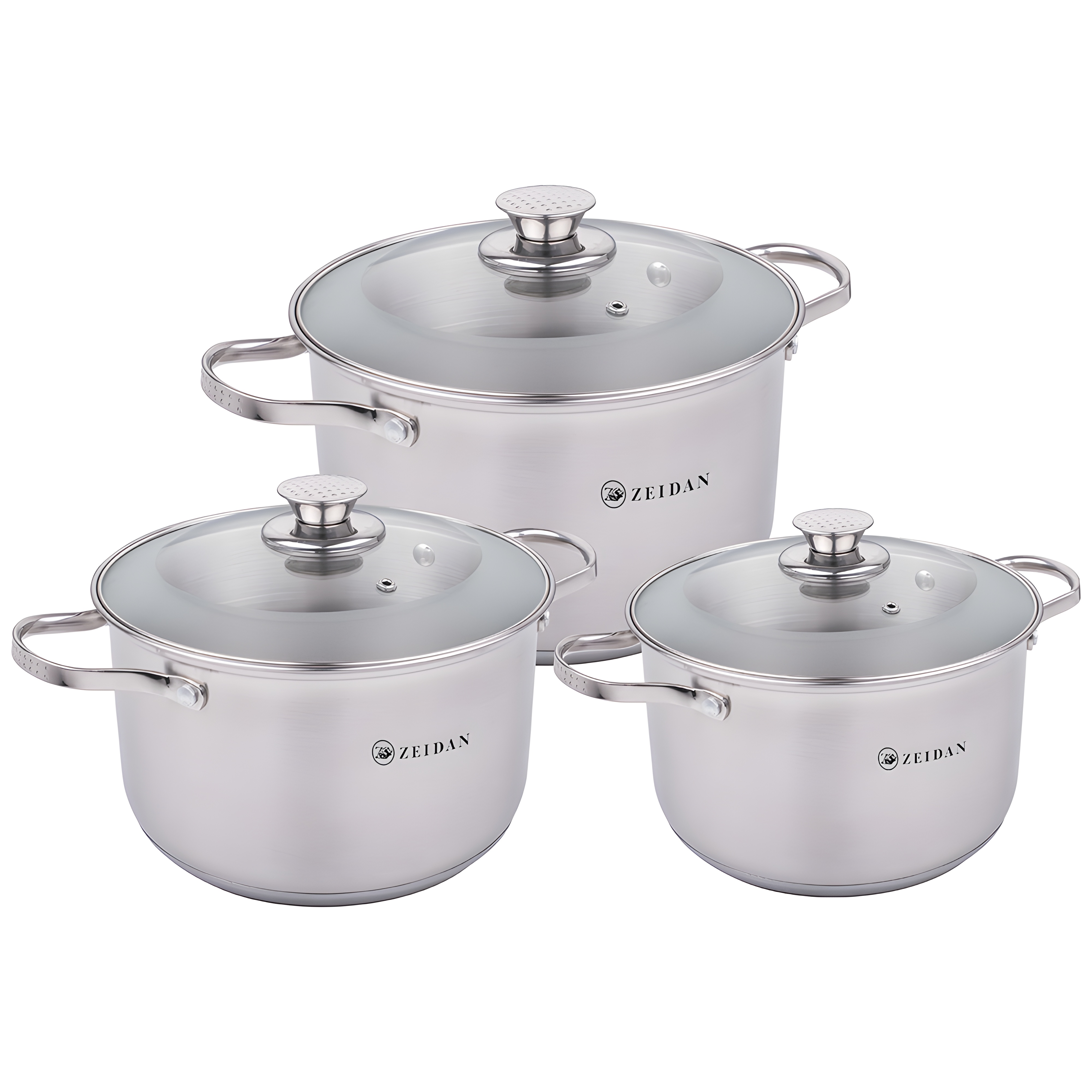 Набор кастрюль с крышками 3 шт 2.1л D16см, 3л D18см, 4л D20см, нержавеющая сталь Zeidan