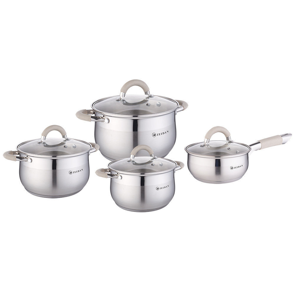 Набор посуды Zeidan 8 пр. 3 кастрюли с крышками 2 л 16x9,5 см, 3 л 18x10,5 см, 4 л 20x11,5 см, сотейник с крышкой 1,5 л 16х7,5 с