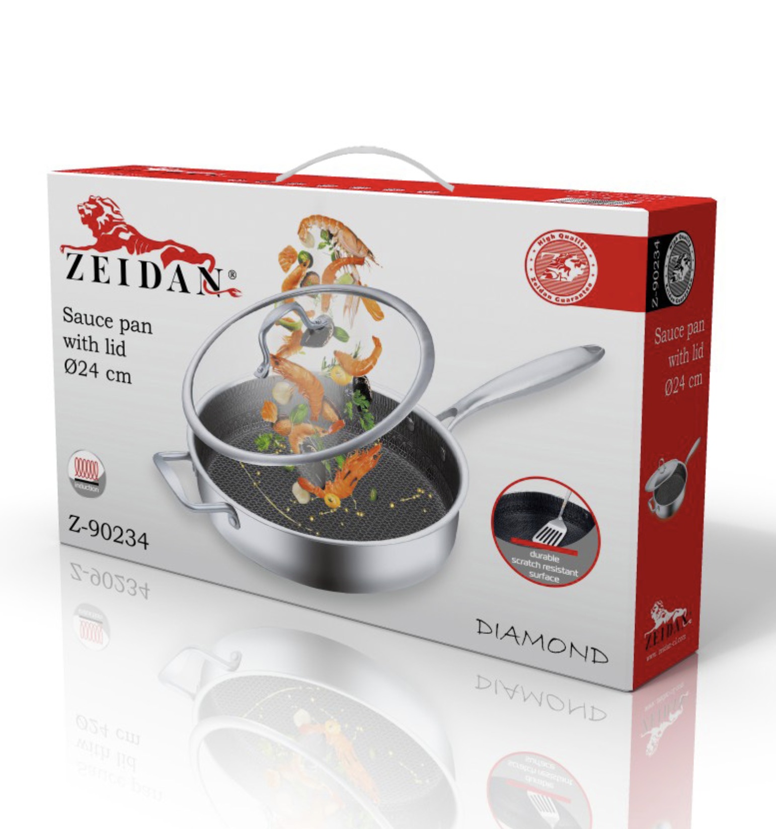 Сотейник с крышкой D24x6 см, высококачественная нержавеющая сталь, 3-х слойный корпус, индукционное дно