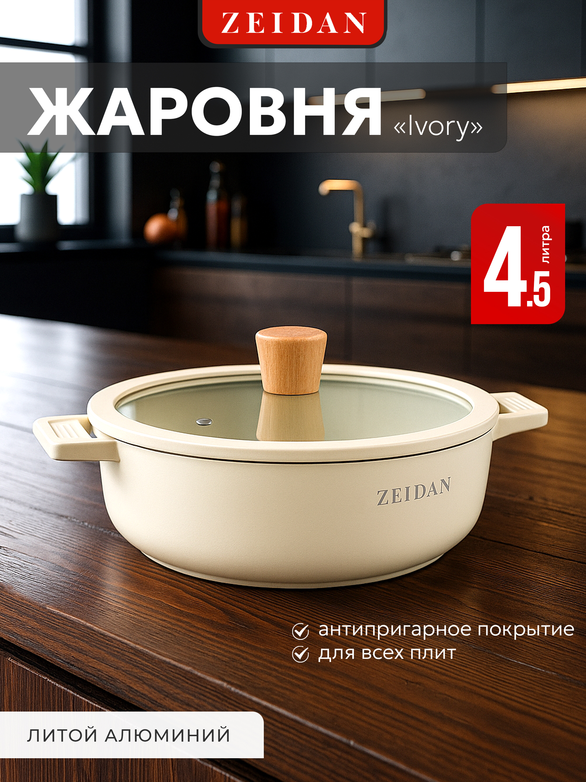 Жаровня со стеклянной крышкой – 4,6 л (d28х7,5см), литой алюминий