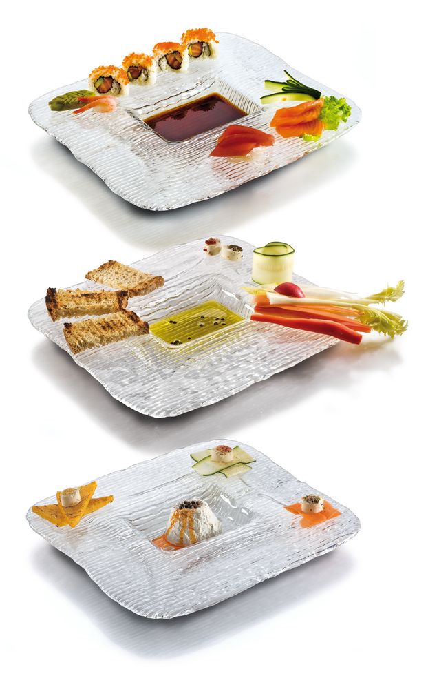Блюдо для закусок «new style». Размеры 31х30х3 см Материал стекло Вес (1 шт.) 1,92 кг Транспортная упаковка 30,5x35,0x4,5 см Вес 1,92 кг Объем упаковки 0,005 м? Количество в упаковке 1 шт. Виды нанесения SH-Шелкография (1 цвет) Блюдо для закусок New Style итальянского бренда IVV — оригинальный и стильный подарок, который превратит любую трапезу в красивый ритуал. Тарелку можно использовать для подачи различных кушаний: центральную часть хорошо заполнить соусом или гарниром, а на плоской части расположить основное блюдо. Как и все изделия итальянской компании IVV, блюдо New Style выполнено мастерами-стеклодувами вручную. IVV бережно хранит традиции и способы производства стеклянной посуды, но всегда идет в ногу со временем. экологически чистое стекло; высокое качество изготовления; стильный дизайн; ручная работа.