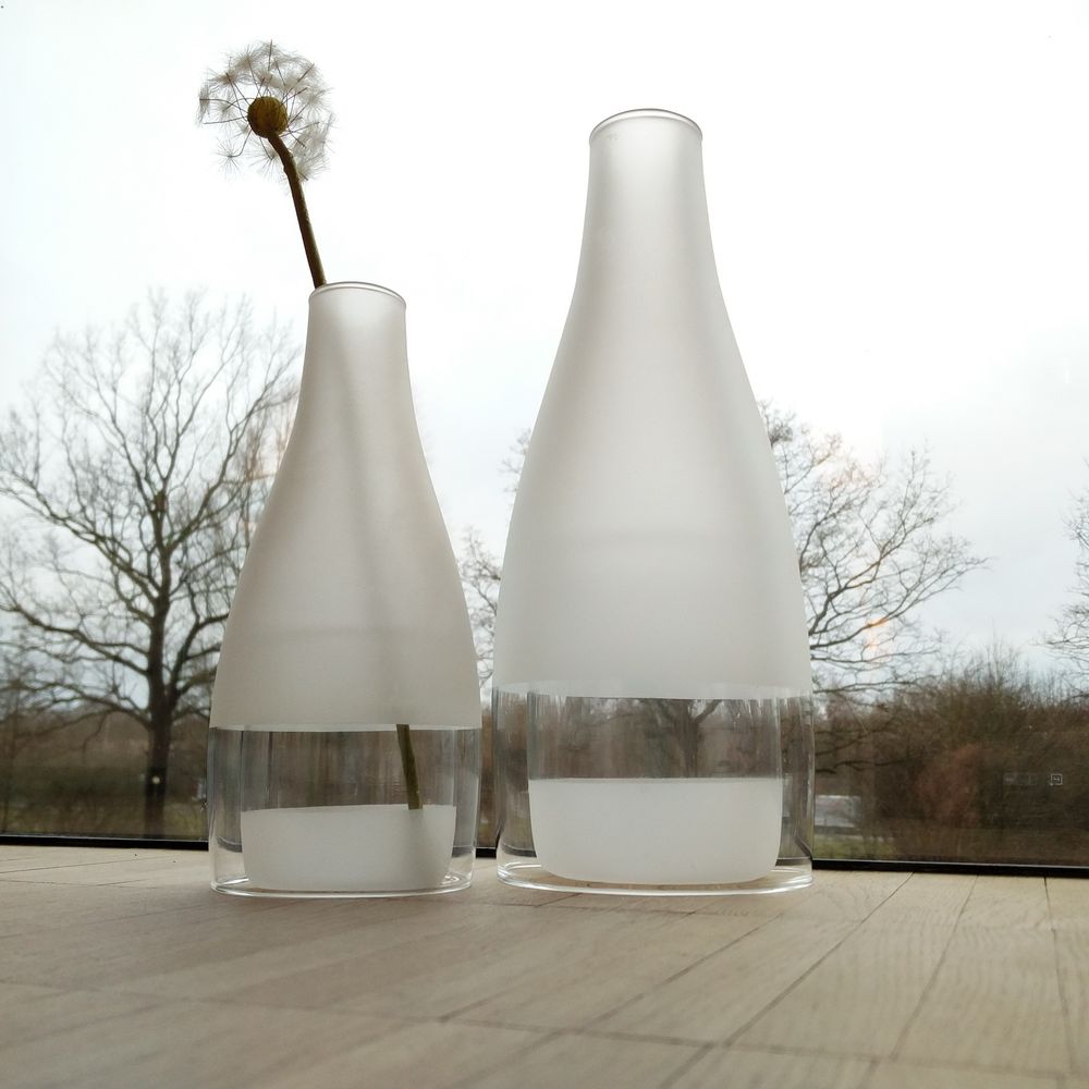 Ваза состоит из двух предметов: стакана и колбы, которая и придает вазе ее классическую форму и функционал.