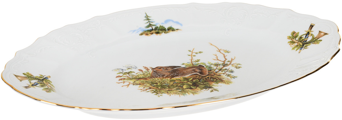 Блюдо овальное 34 см Bernadotte, декор охотничьи сюжеты