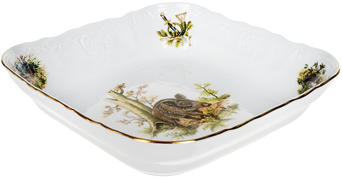 Салатник квадратный 25 см Bernadotte, декор охотничьи сюжеты