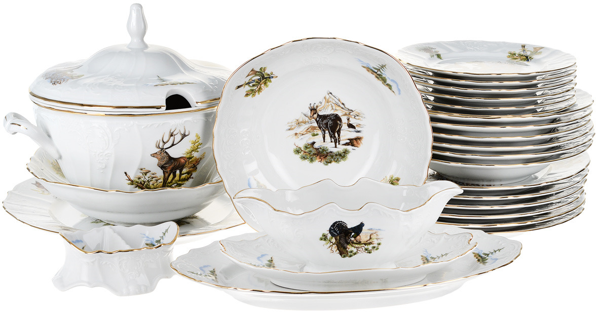 Столовый сервиз 6/25 Bernadotte, декор охотничьи сюжеты