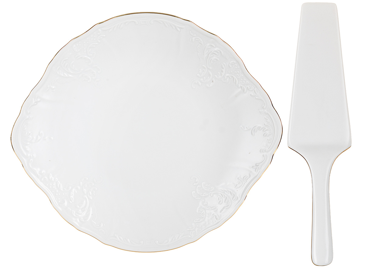 Тарелка для торта с лопаткой 27 см Bernadotte, декор отводка золото