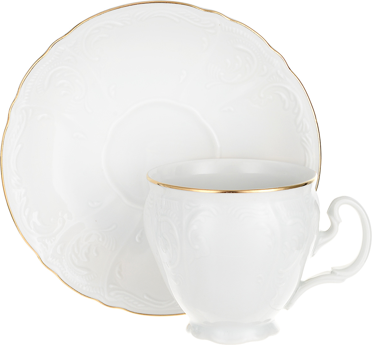 Чайная пара 170 мл с блюдцем 140 мм высокая Bernadotte, отводка золото