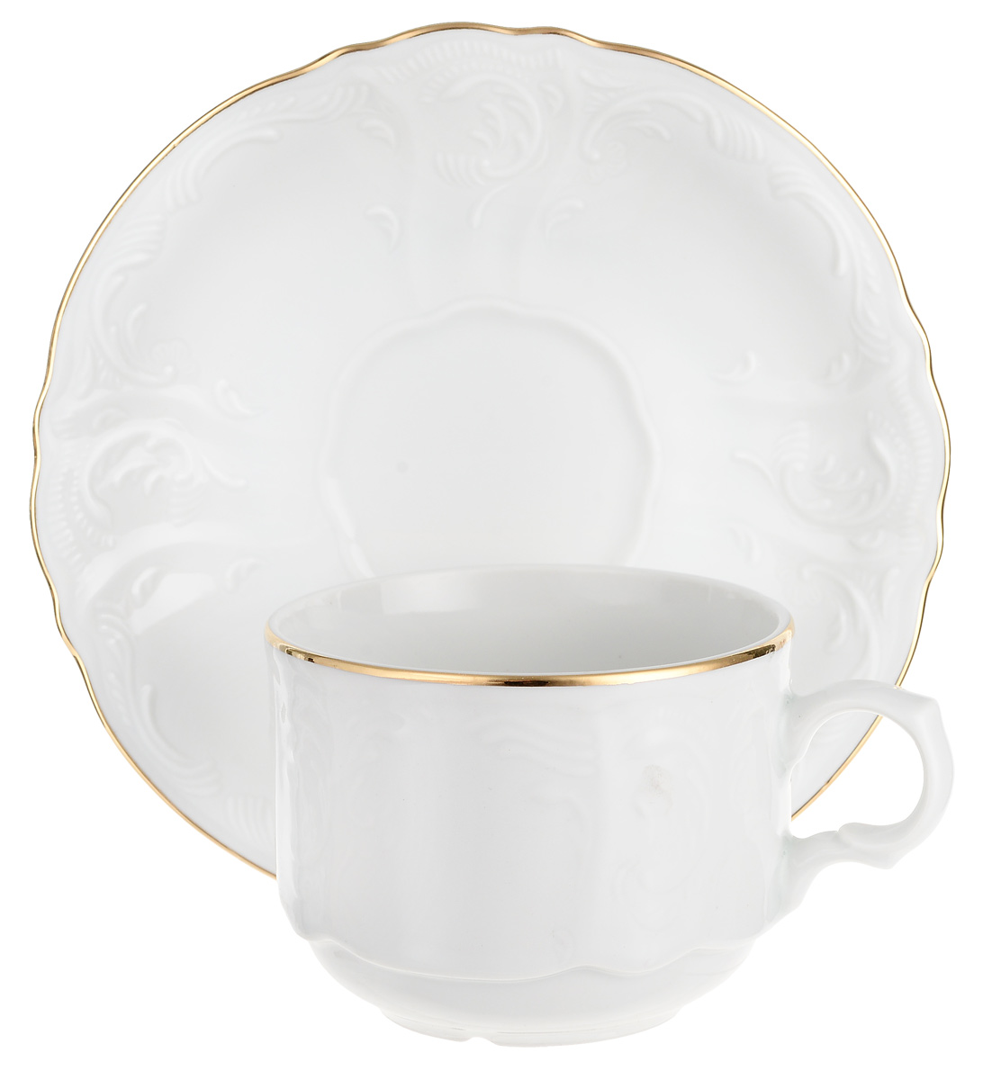 Чашка 240 мл с блюдцем 150 мм низкая Bernadotte, декор отводка золото