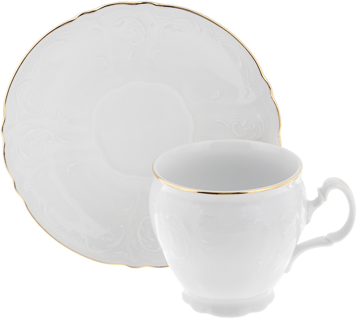 Чайная пара 240 мл с блюдцем 160 мм высокая Bernadotte, отводка золото
