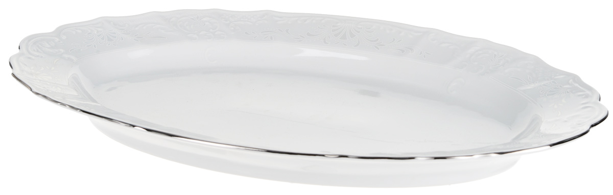 Блюдо овальное 39 см Bernadotte, декор деколь, отводка платина