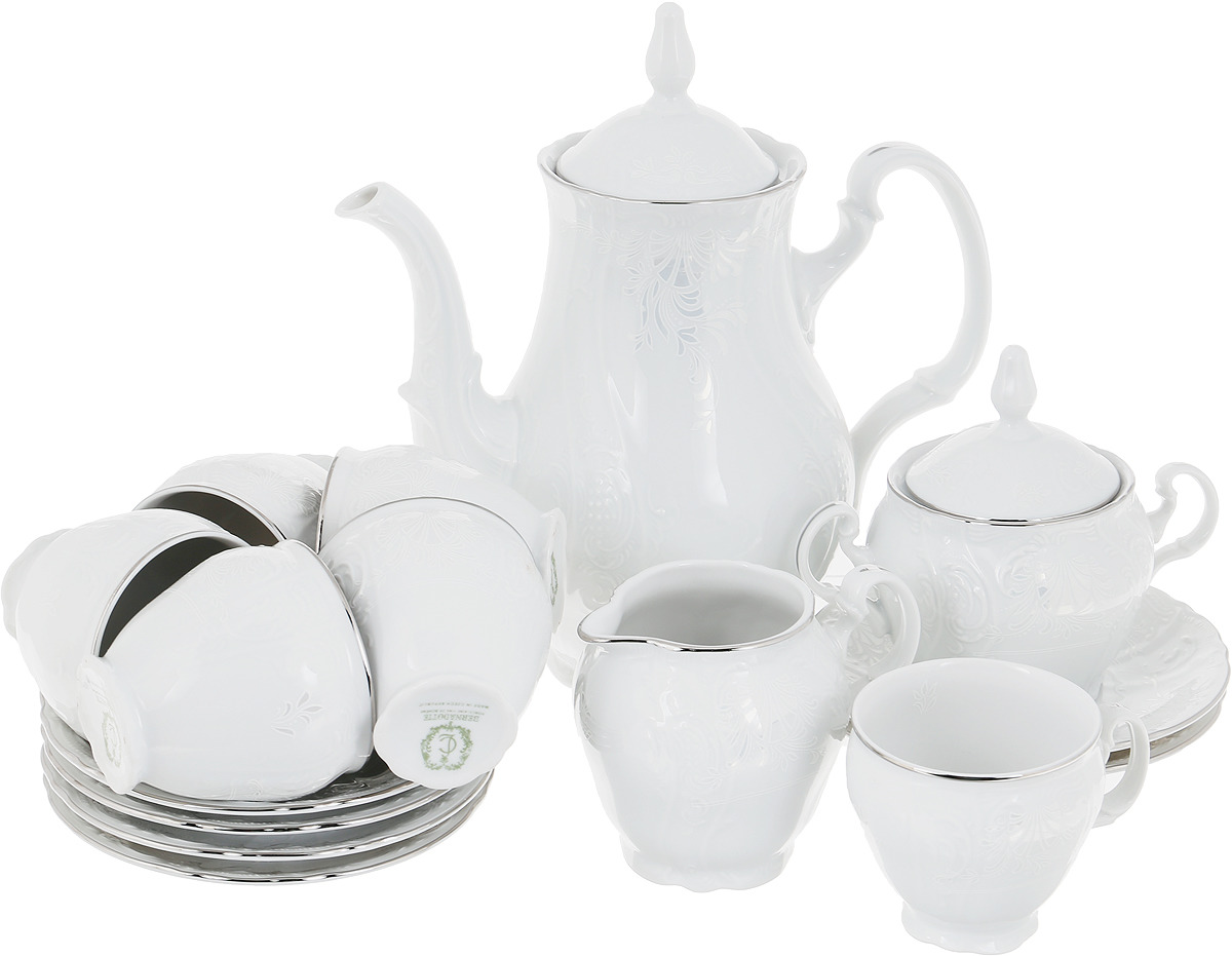 Кофейный сервиз 6/9 Bernadotte, декор деколь, отводка платина