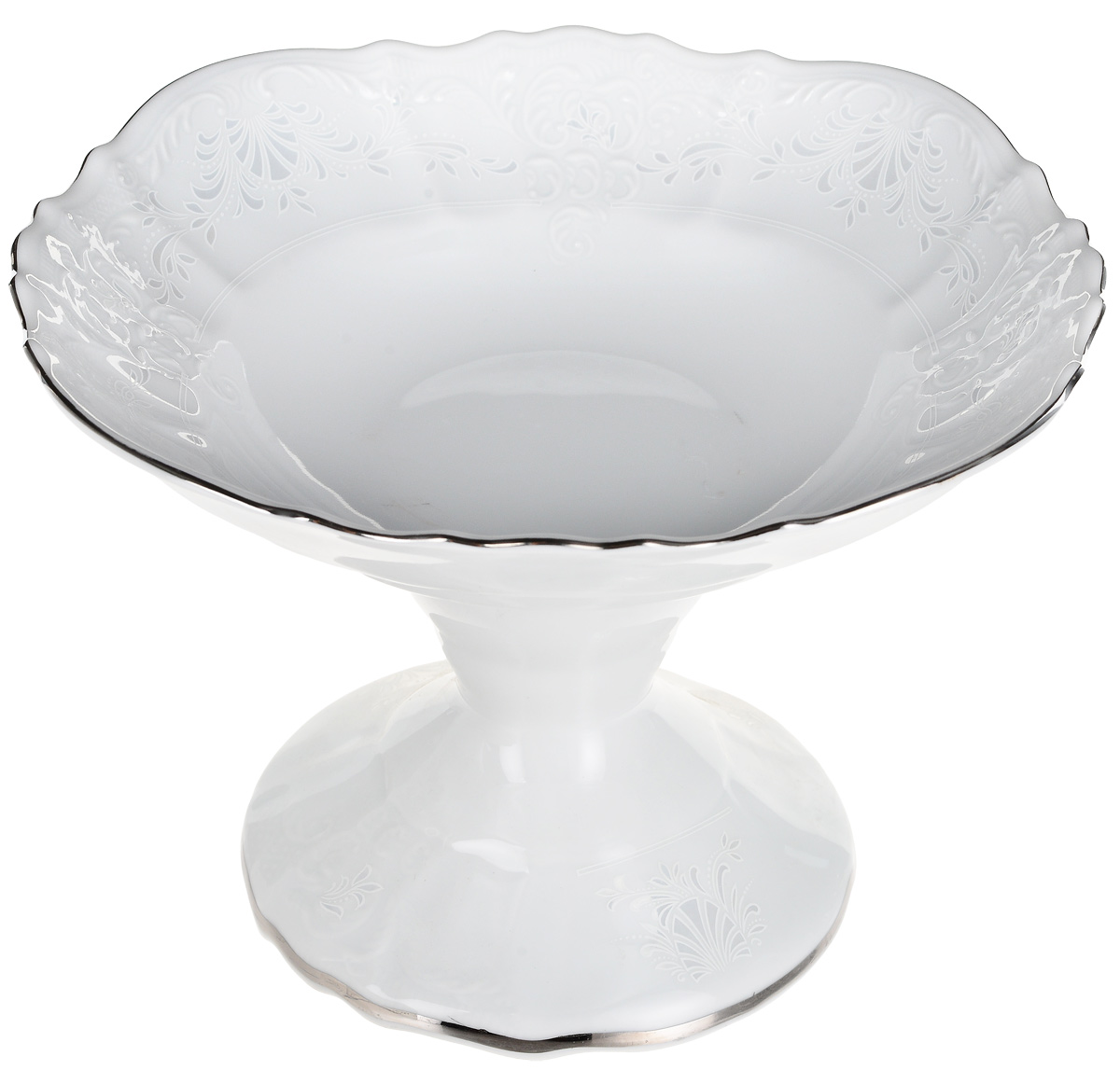 Салатник на ножке 25 см Bernadotte, декор деколь, отводка платина