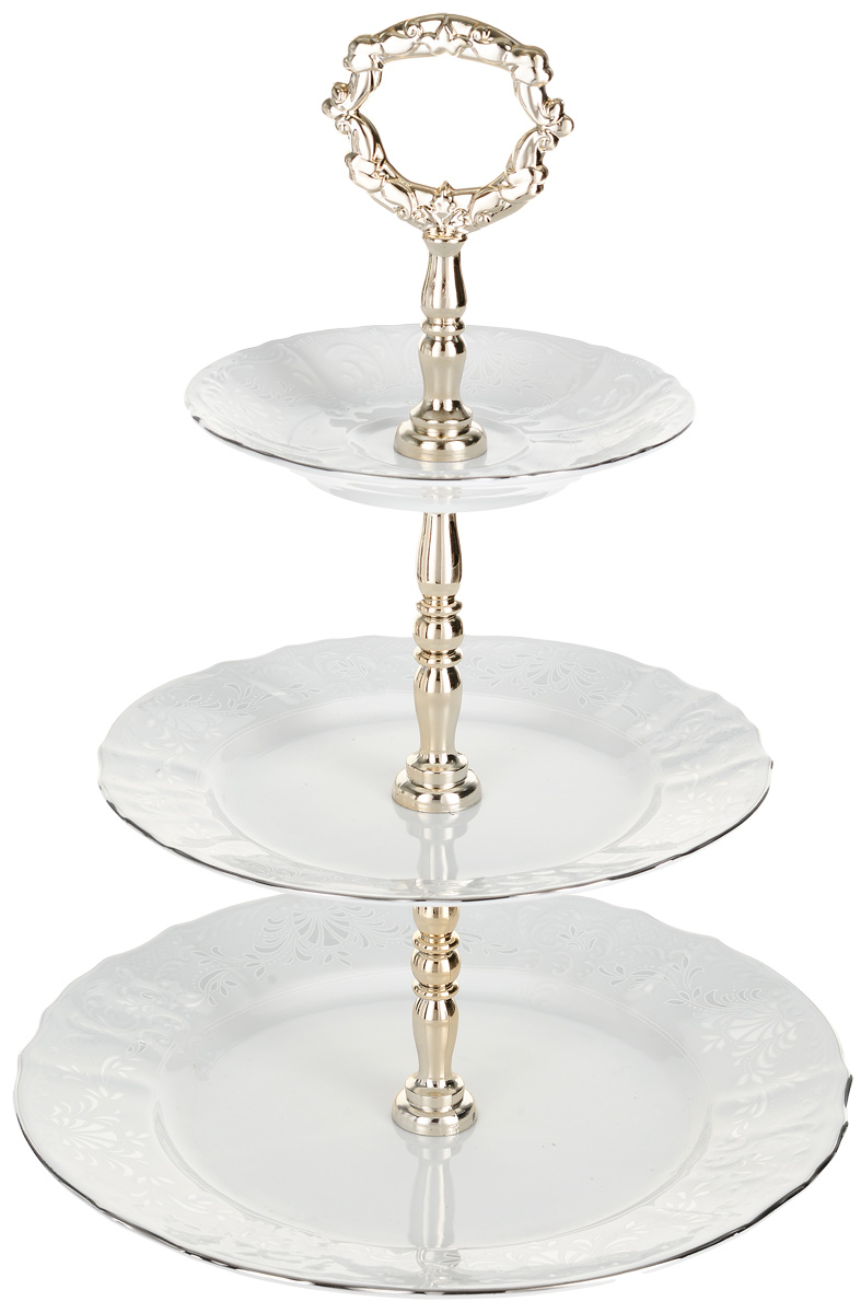 Этажерка 3-х ярусная Bernadotte, декор деколь, отводка платина