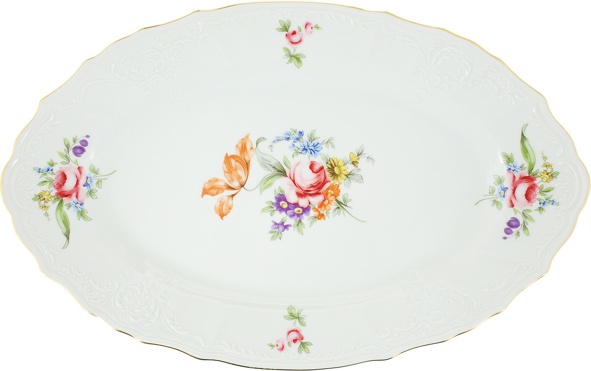 Блюдо овальное 34 см Bernadotte, декор мейсенский букет