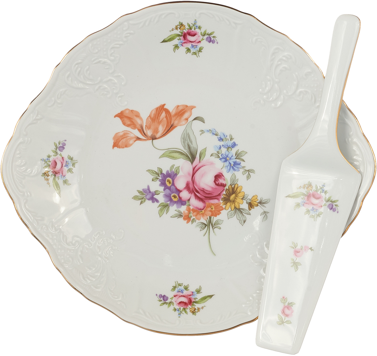 Тарелка для торта с лопаткой 27 см Bernadotte, декор мейсенский букет