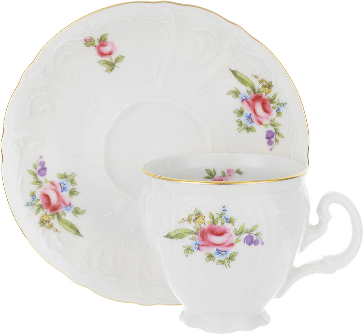 Чайная пара 170 мл 140 мм высокая Bernadotte, мейсенский букет