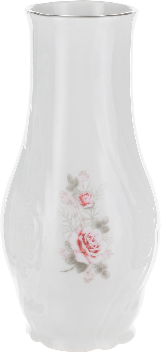 Ваза 19 см Bernadotte, декор бледные розы, отводка платина