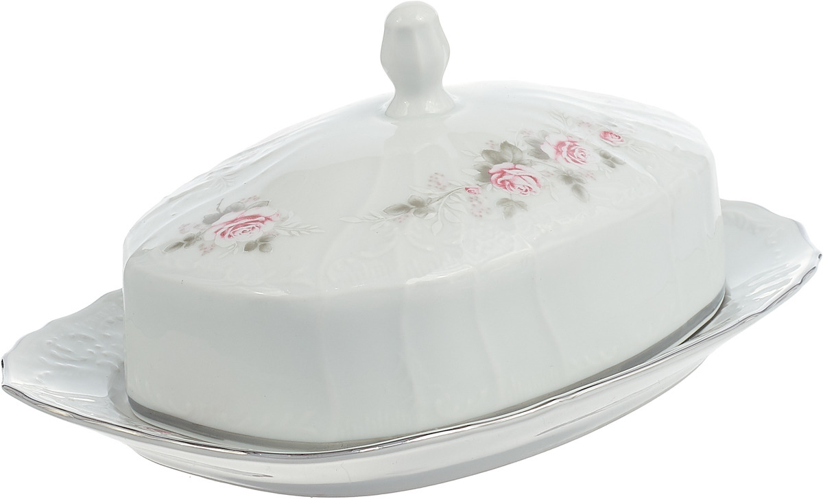 Масленка Bernadotte, декор бледные розы, отводка платина