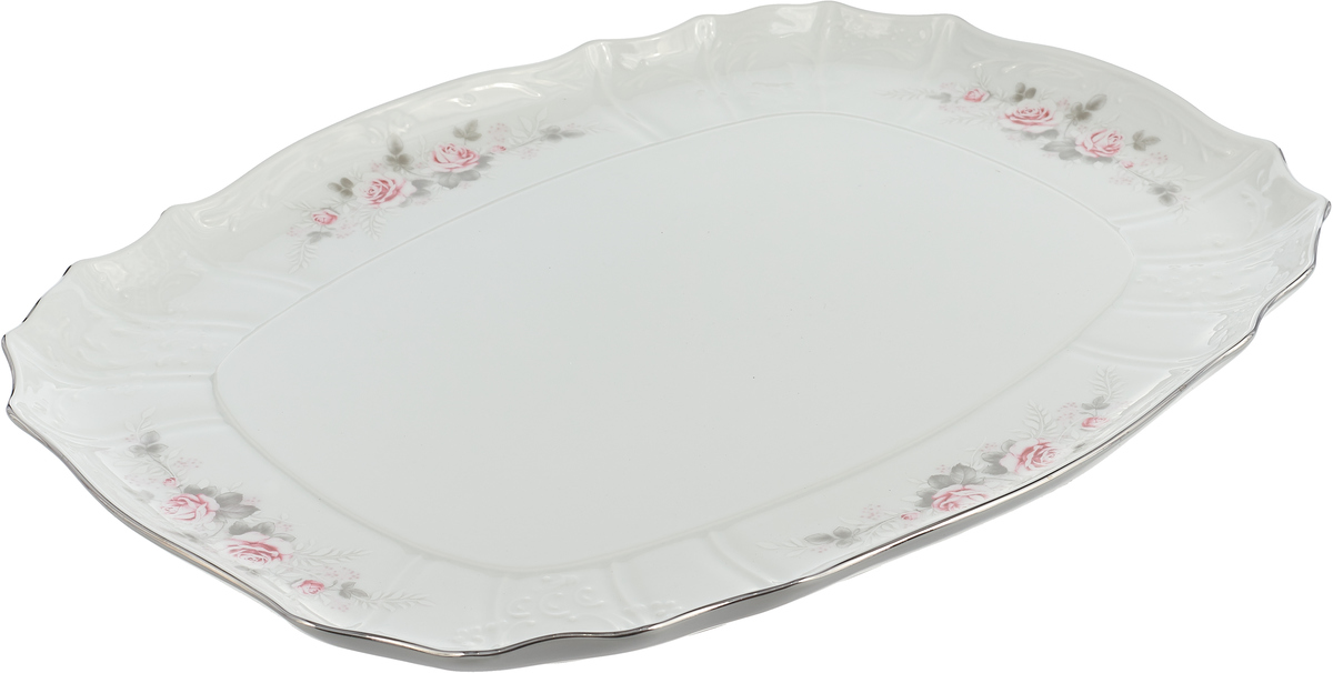 Поднос прямоугольный 40 см Bernadotte, декор бледные розы, отводка плати