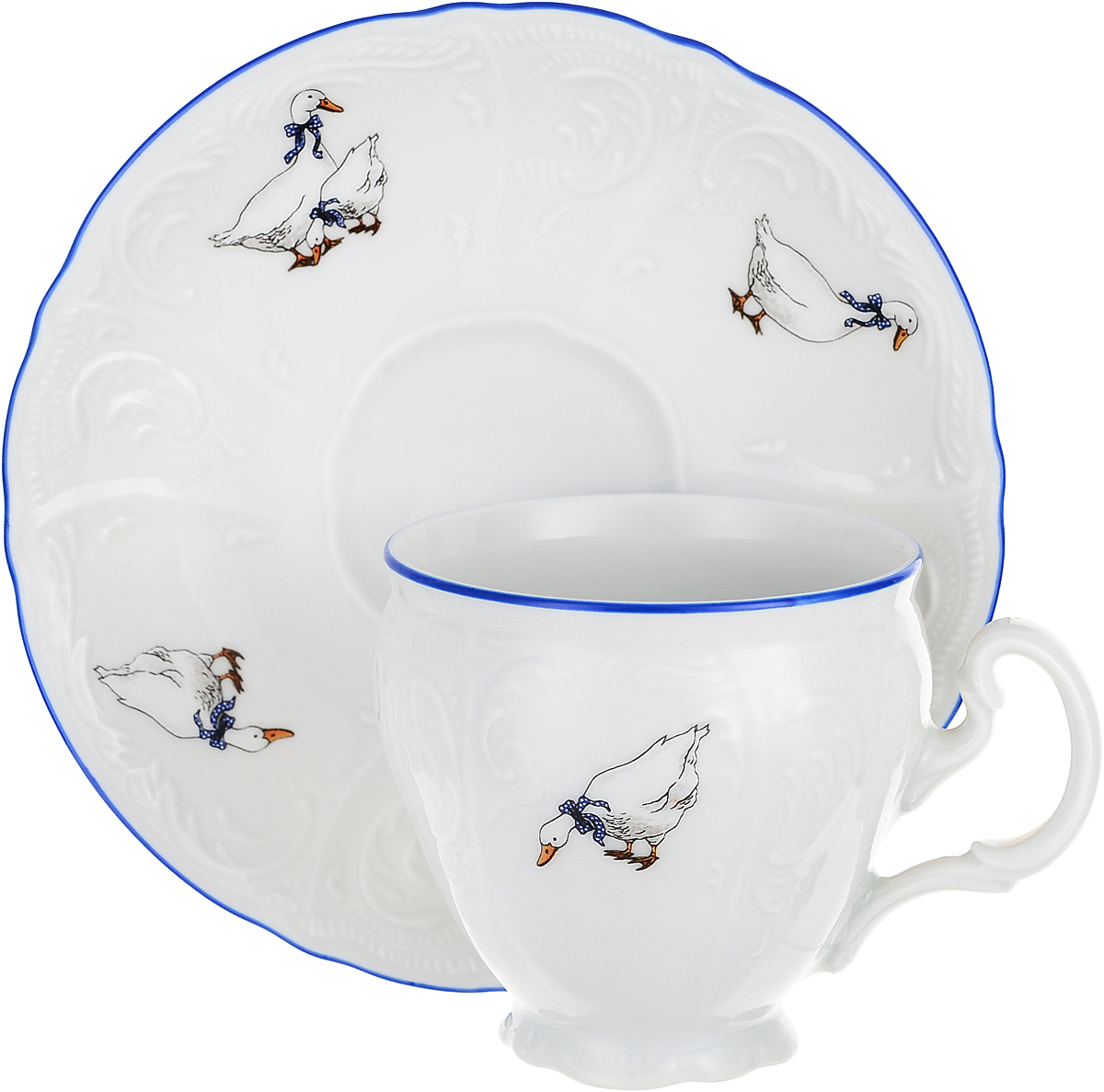 Чашка 170 мл с блюдцем 140 мм высокая Bernadotte, декор гуси
