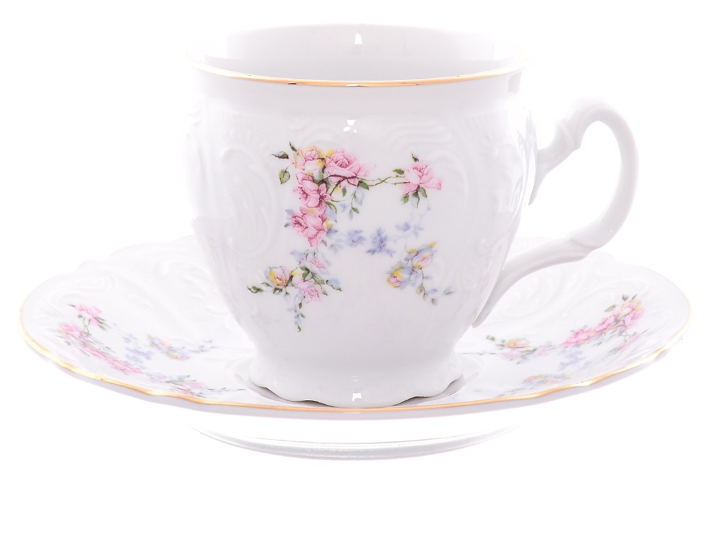 Чашка 240 мл с блюдцем 160 мм высокая Bernadotte, декор дикая роза, отво