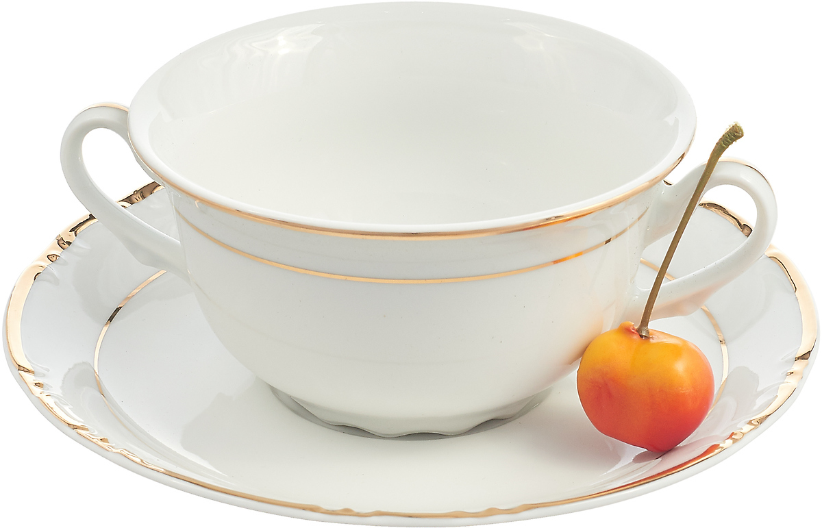 Чашка 335 мл с блюдцем 170 мм для бульона; "Constance", декор "отводка золото"