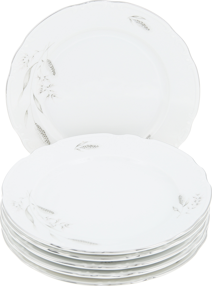Тарелка мелкая 21 см; "Constance", декор "серебряные колосья, отводка платина"