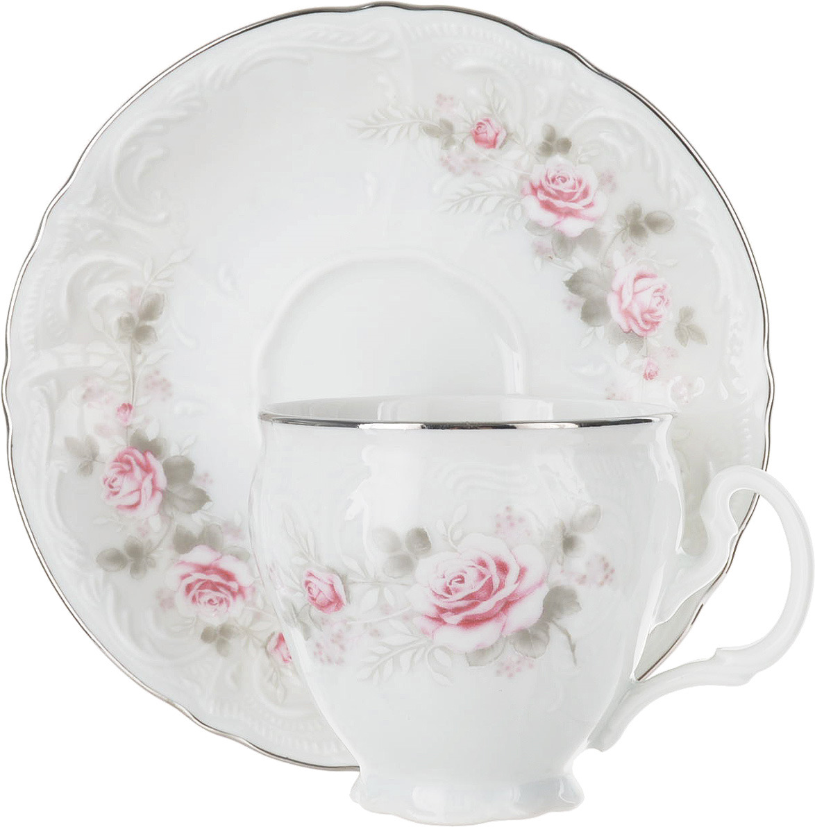 Чайная пара 240 мл 160 мм высокая Bernadotte, бледные розы платина